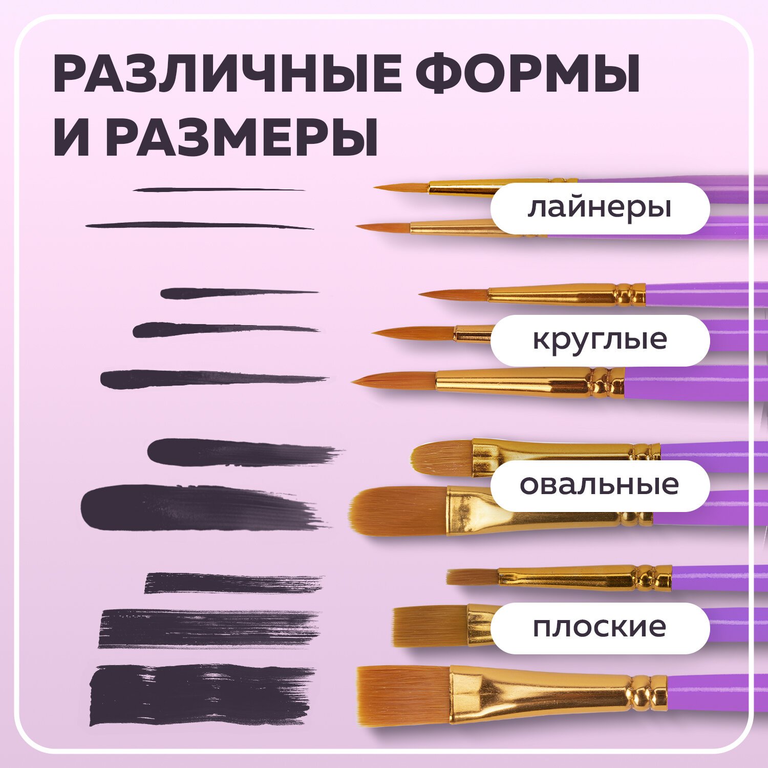 Кисти синтетика BRAUBERG, НАБОР 10 шт., фиолетовые (Круглые; Овальные; Плоские; Лайнеры), 201029