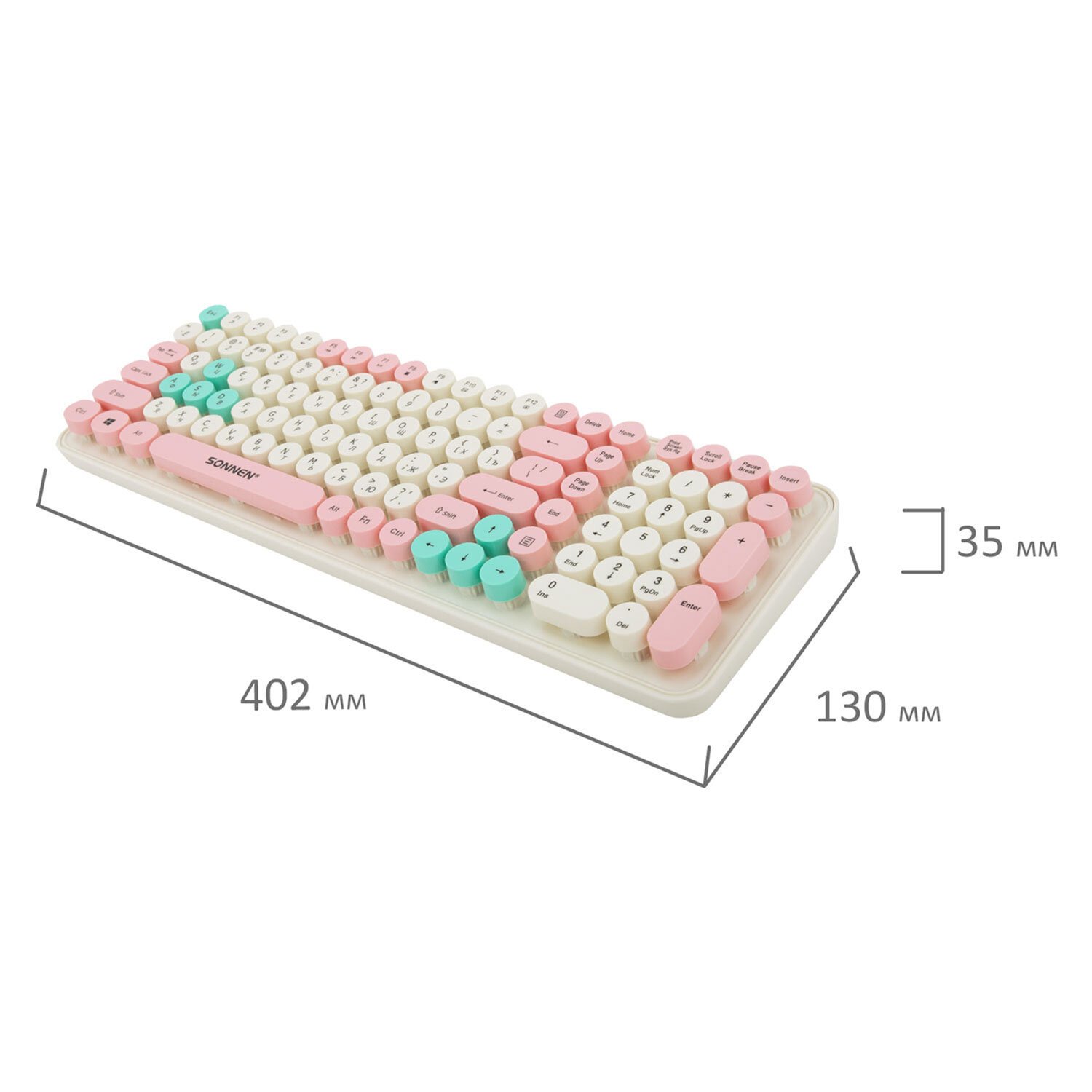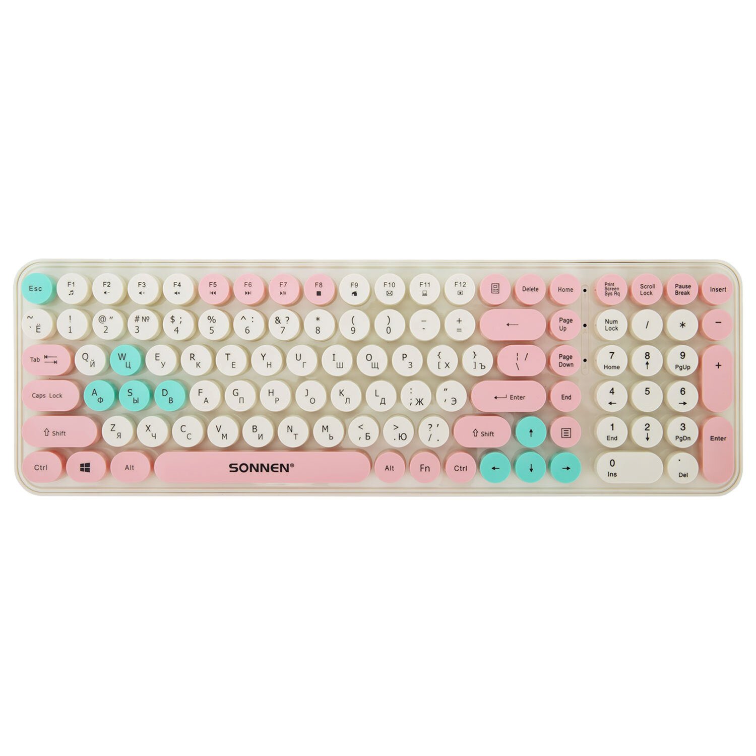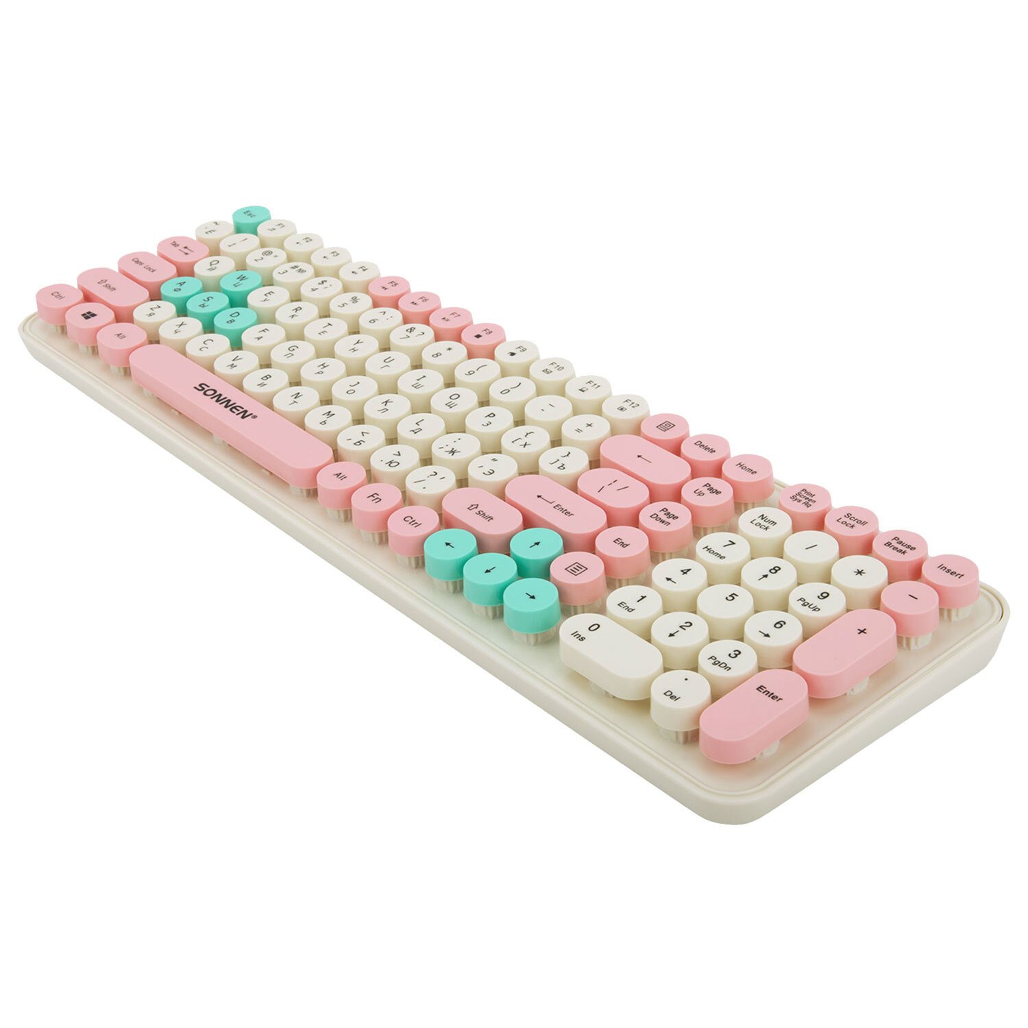 Клавиатура беспроводная USB, 105 клавиш, SONNEN K303PM, слоновая кость/розовый/мятный, 513977