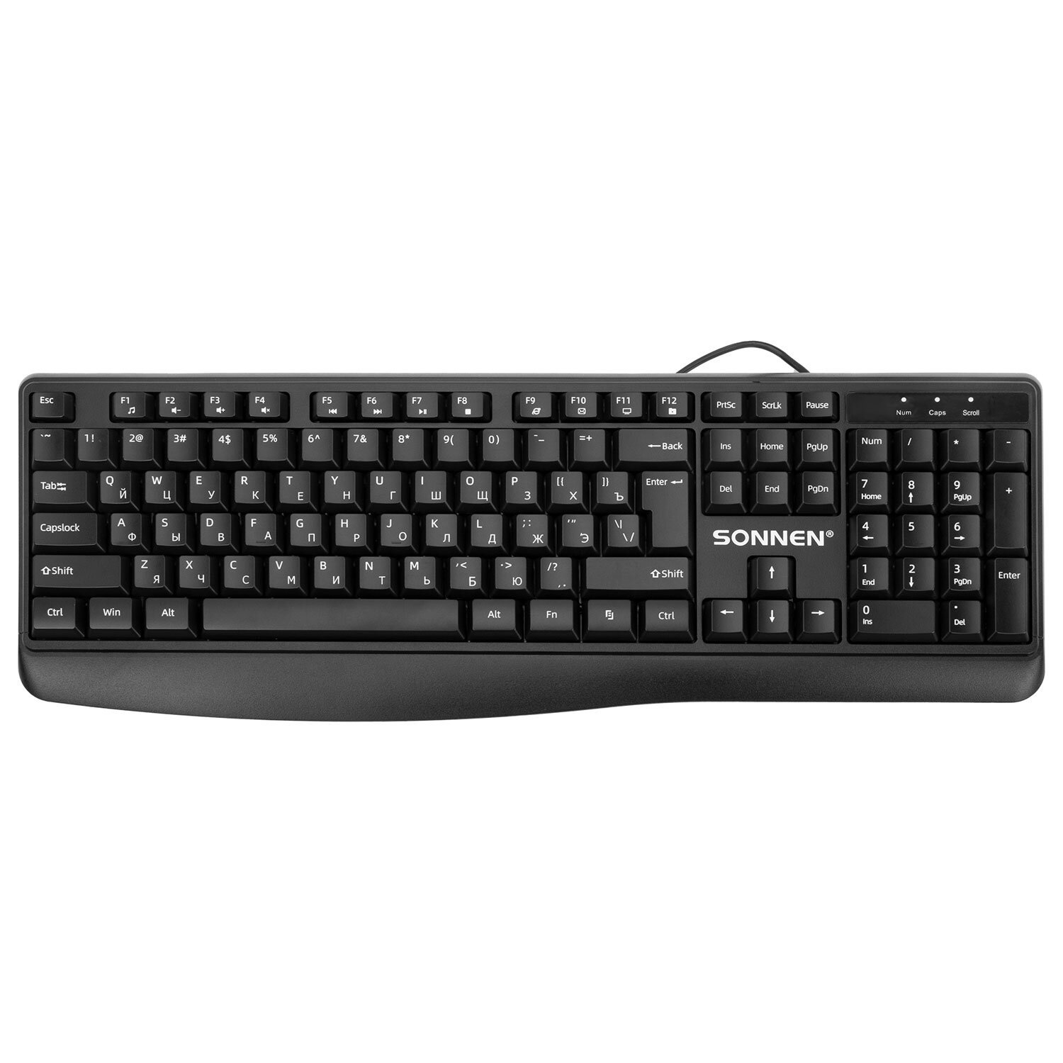 Клавиатура проводная, USB, 104 клавиши, SONNEN KB-8136, черная, 513946