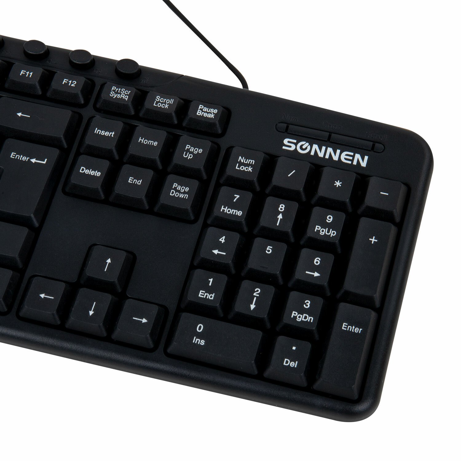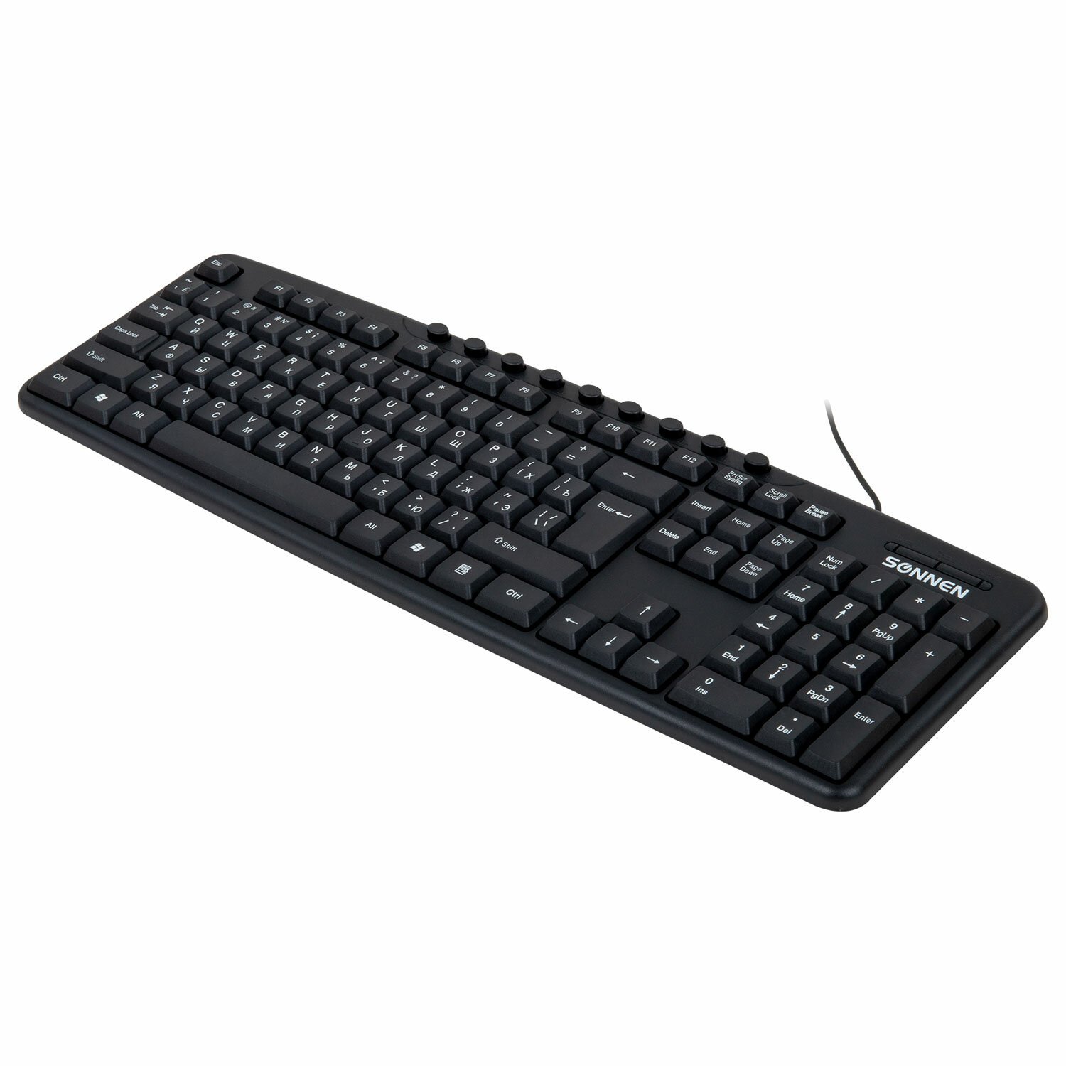 Клавиатура проводная SONNEN KB-8280, USB, 104 плоские клавиши, черная, 513510