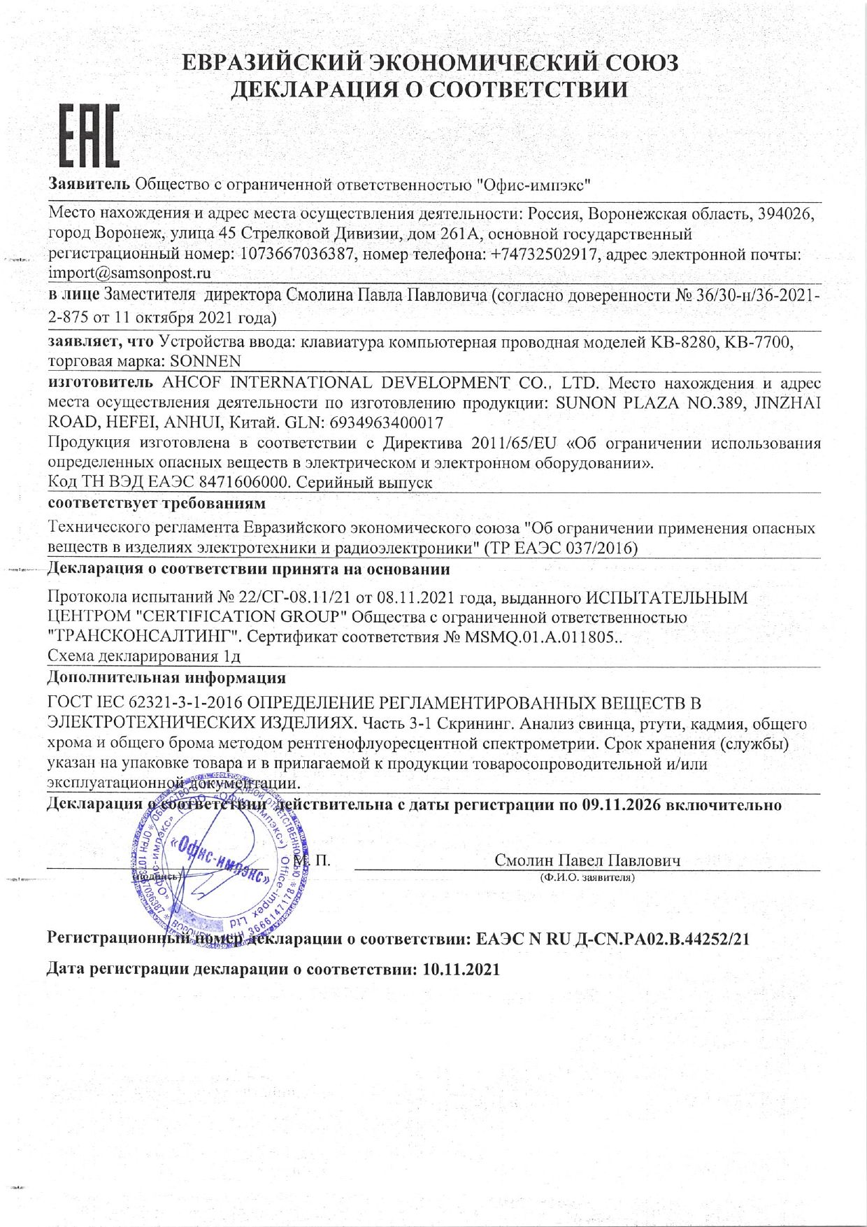 Клавиатура SONNEN создаст отличные условия для работы и развлечений. Благодаря мембранному механизму клавиатура работает практически бесшумно, поэтому не создаст неудобств для сидящих рядом в офисе сотрудников.