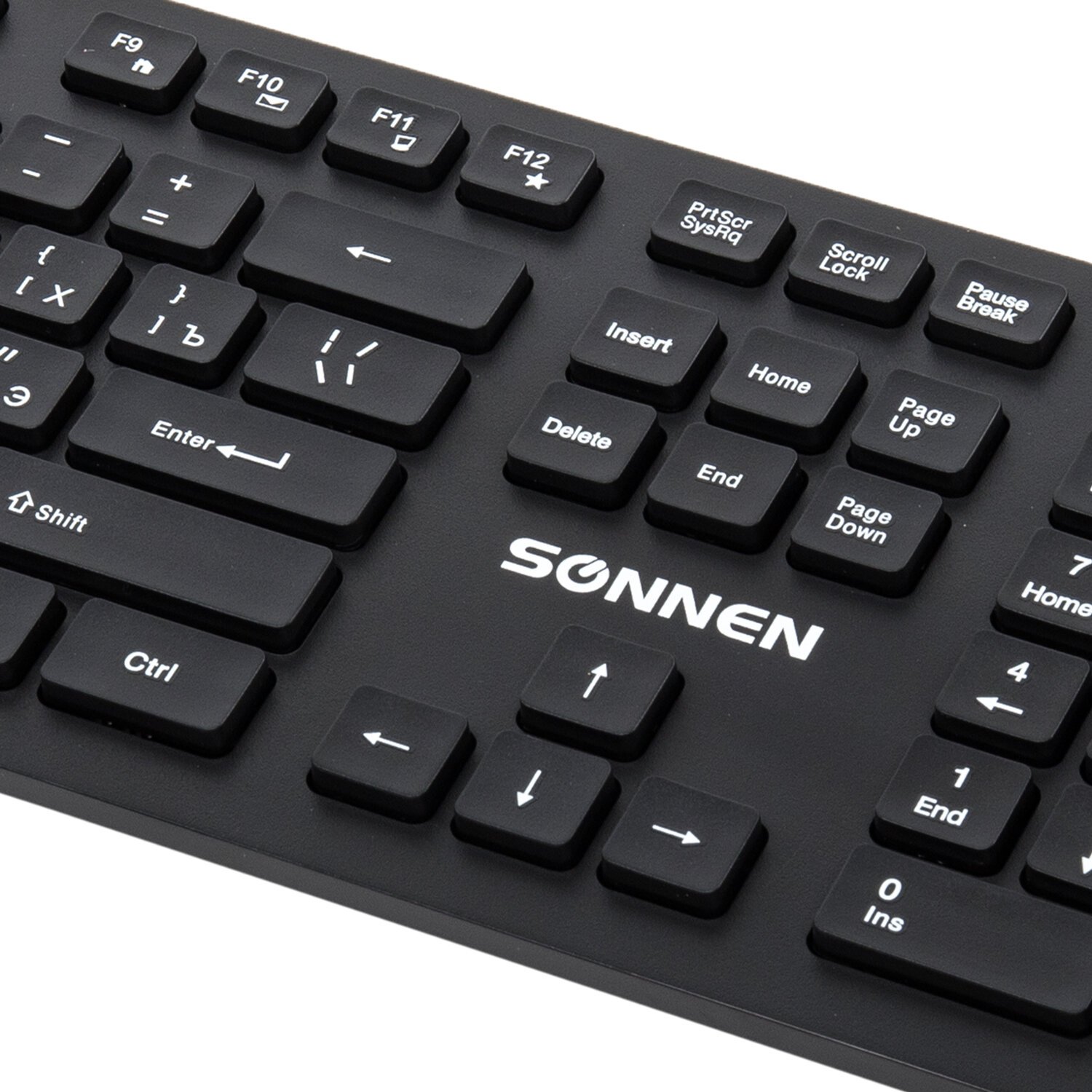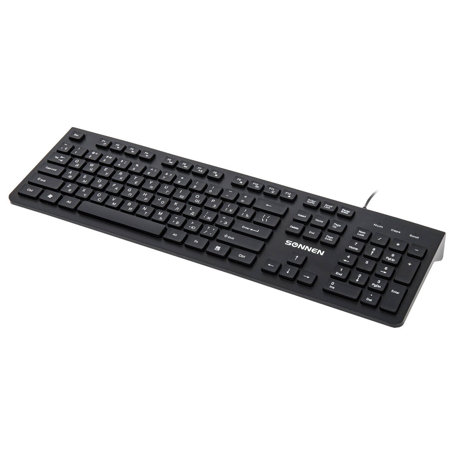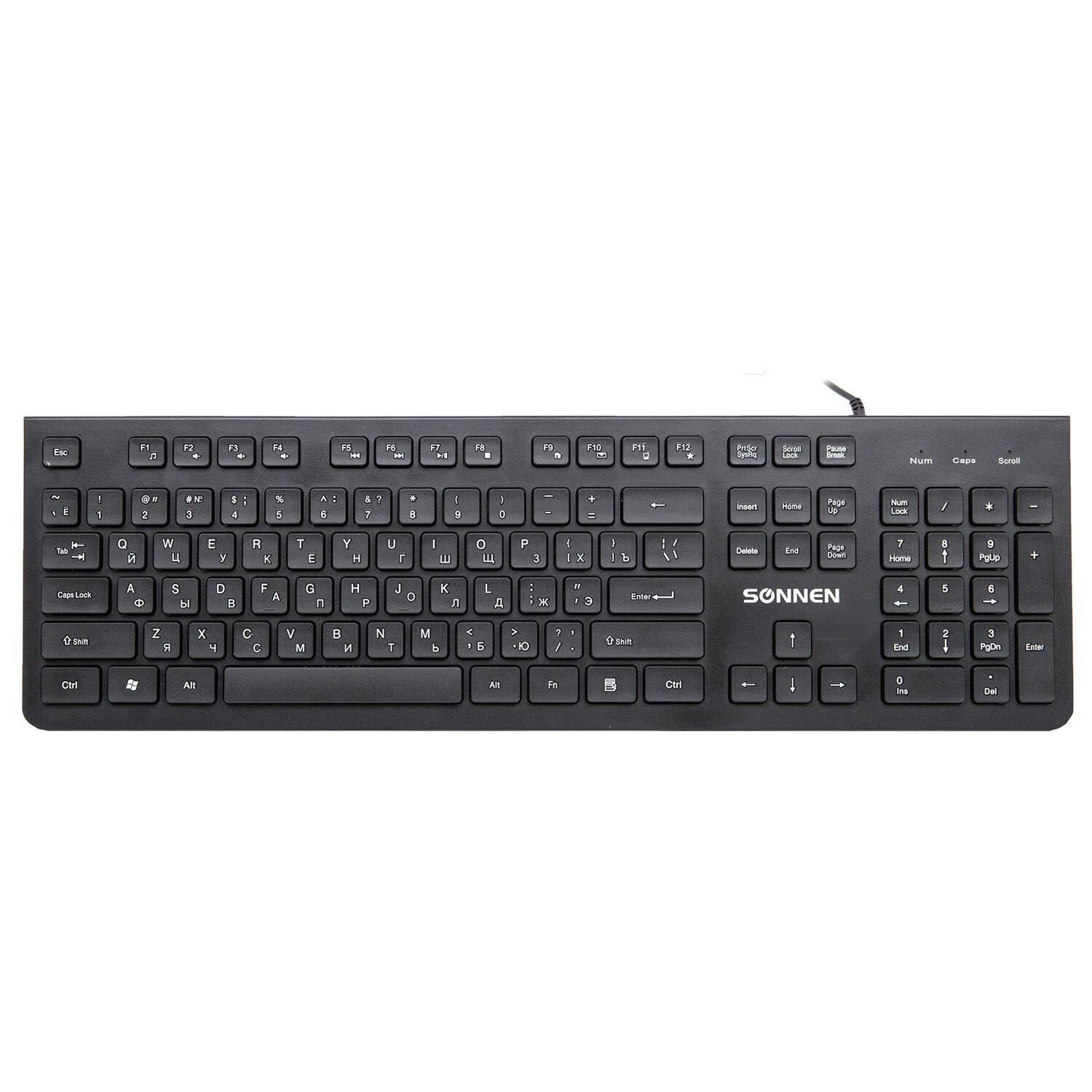 Клавиатура проводная SONNEN KB-8280, USB, 104 плоские клавиши, черная, 513510