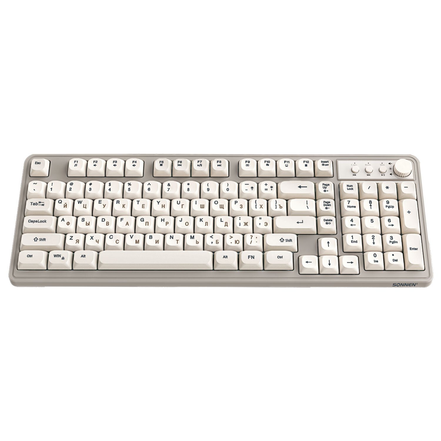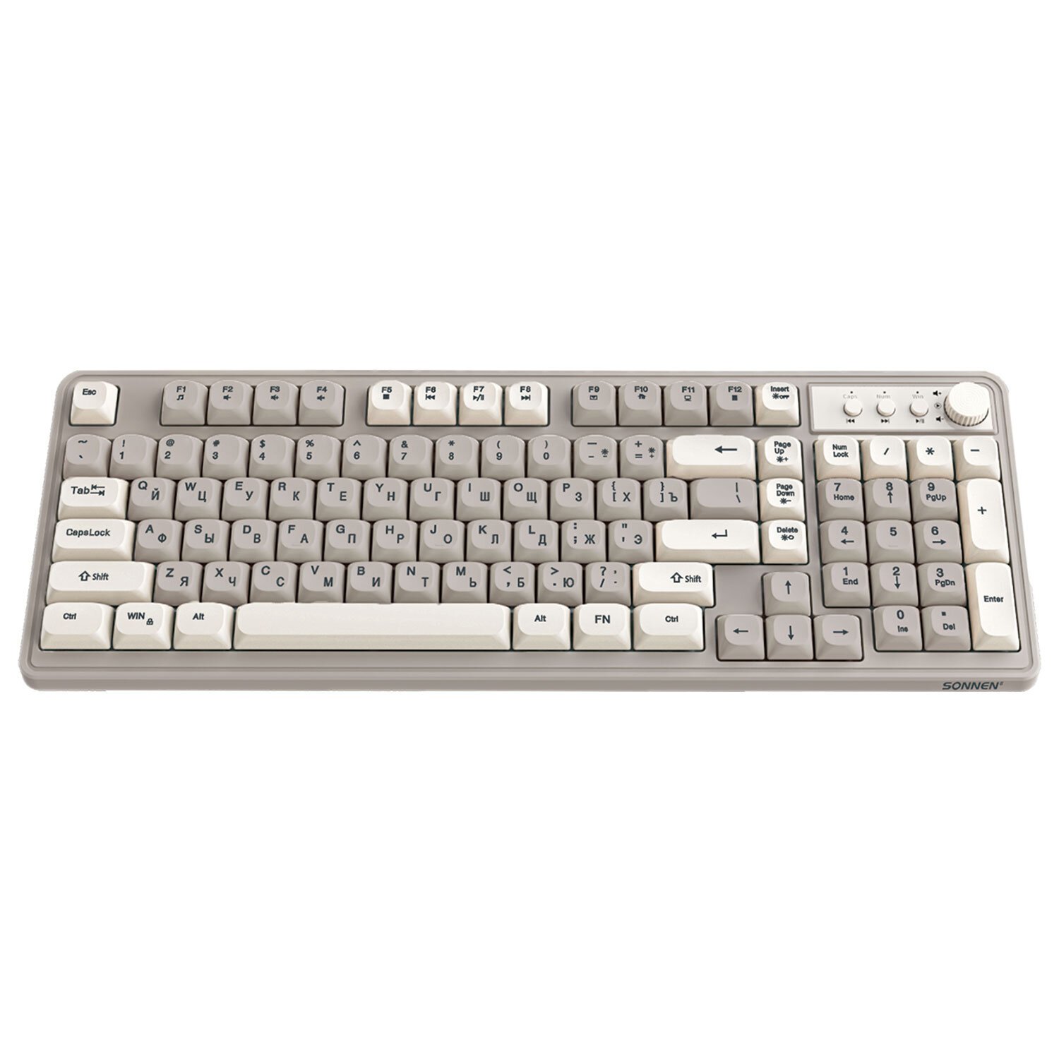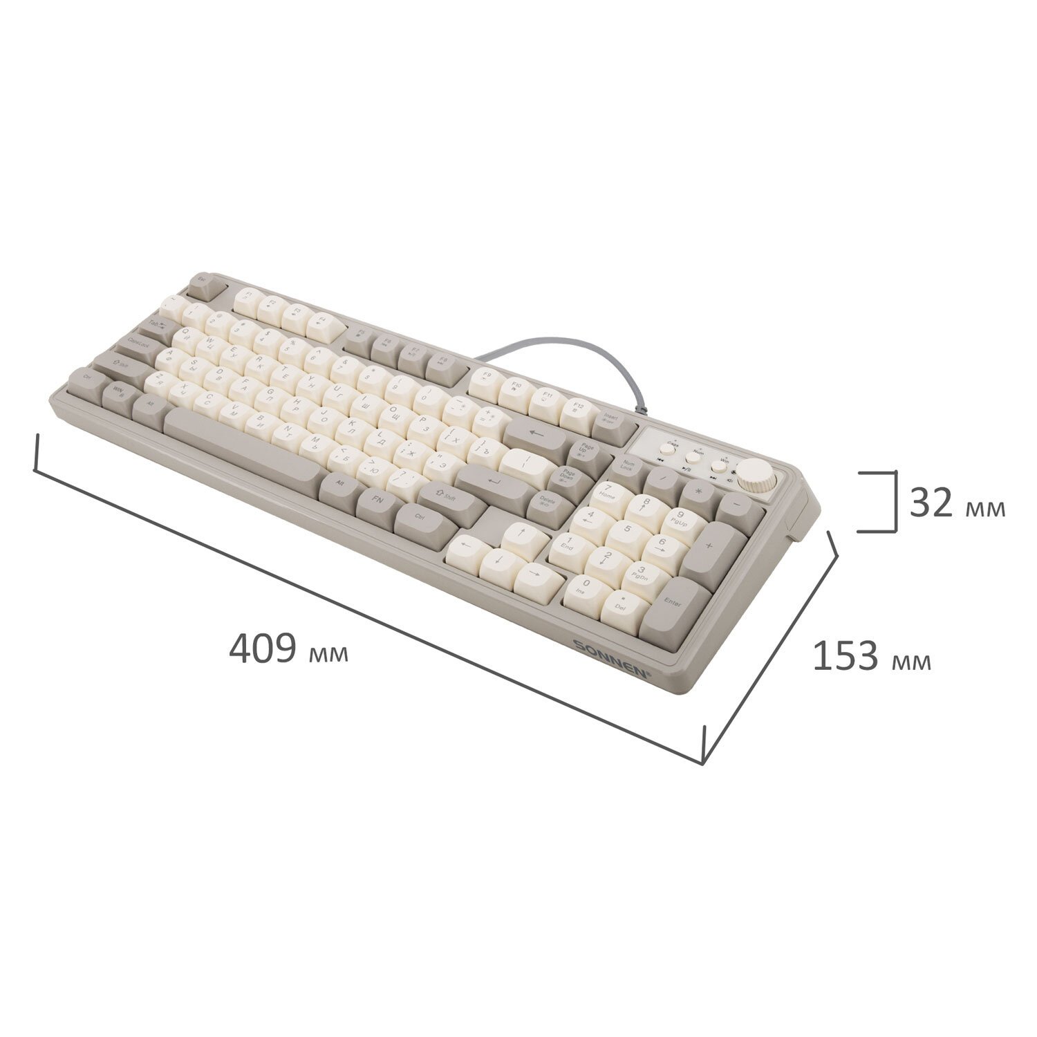 Клавиатура проводная USB, 102+98 клавиш, LED-подсветка, SONNEN K620, слоновая кость/серая, 513950