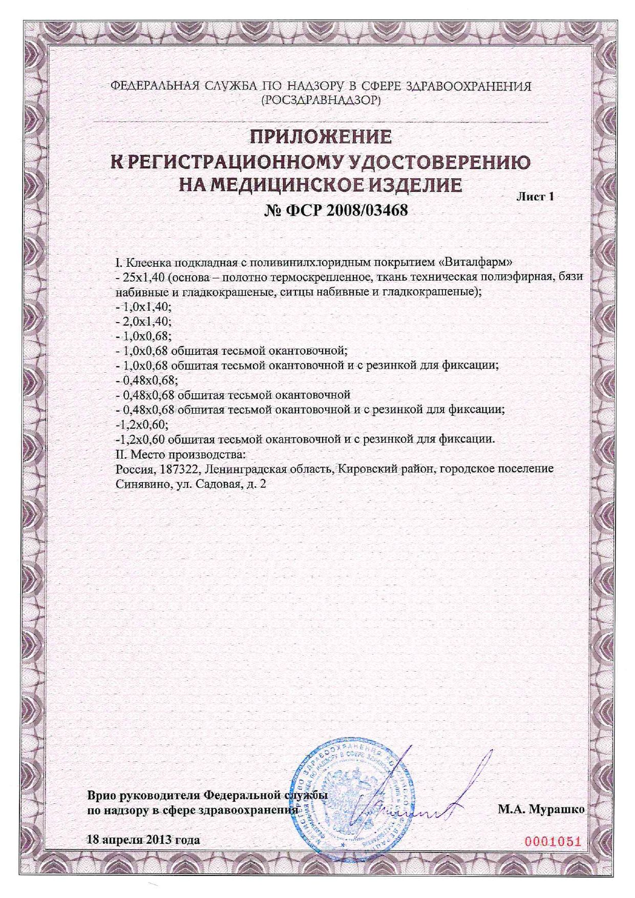Клеенка подкладная ВИТАЛФАРМ применяется для санитарно-гигиенических целей в качестве подкладного водонепроницаемого материала в медицинской практике и в быту.