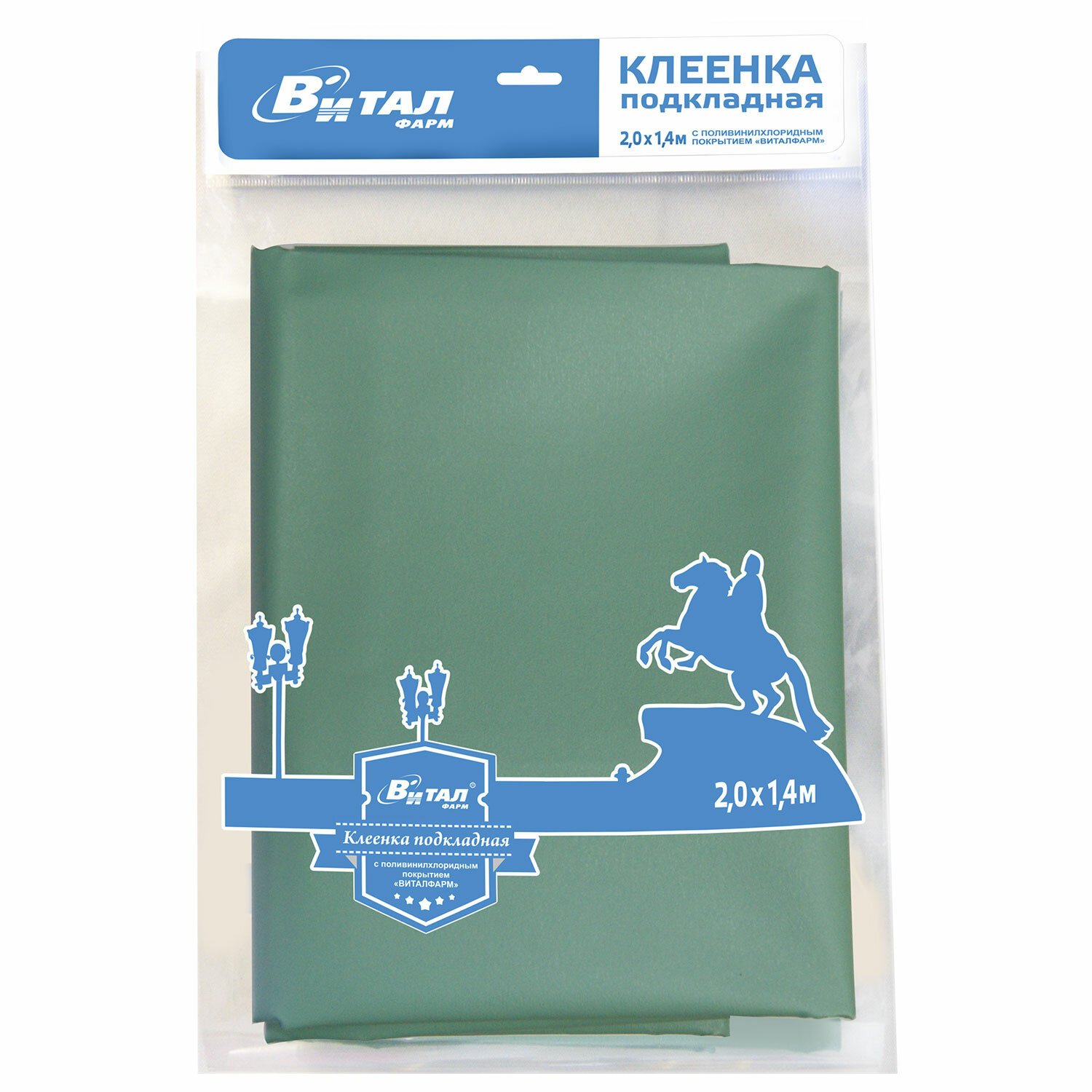 Клеенка подкладная зеленая с ПВХ-покрытием 1,4 х 2,0 м, ВИТАЛФАРМ, ВИТ00004940