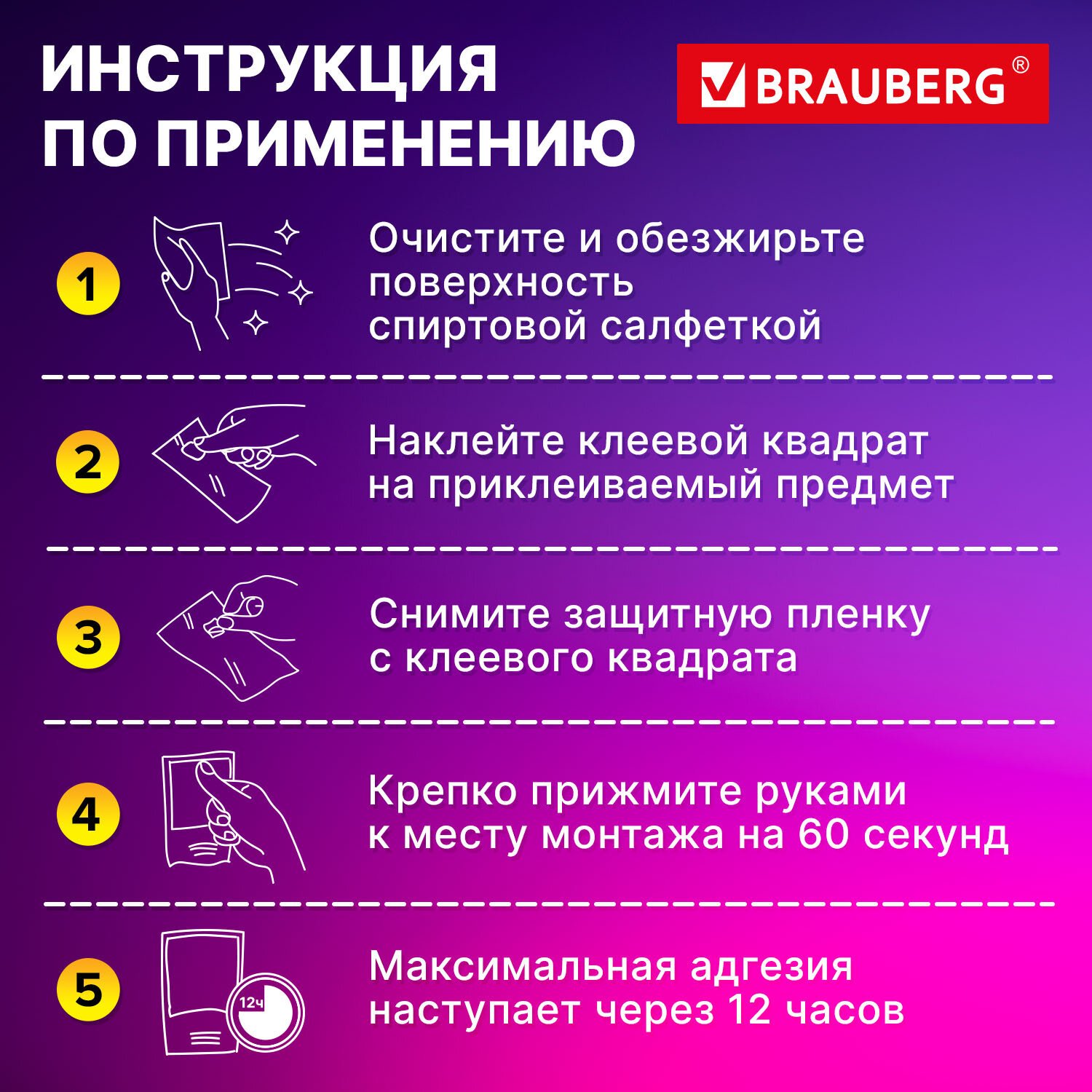 Клеевые квадраты двусторонние BRAUBERG применяется для фиксации предметов и крепежа к различным типам поверхностей, в том числе прозрачным.