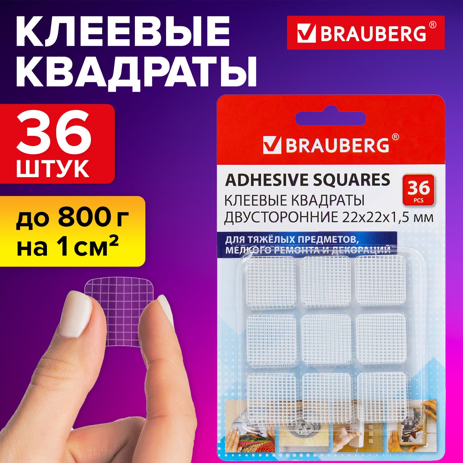 Клеевые квадраты двусторонние BRAUBERG применяется для фиксации предметов и крепежа к различным типам поверхностей, в том числе прозрачным.