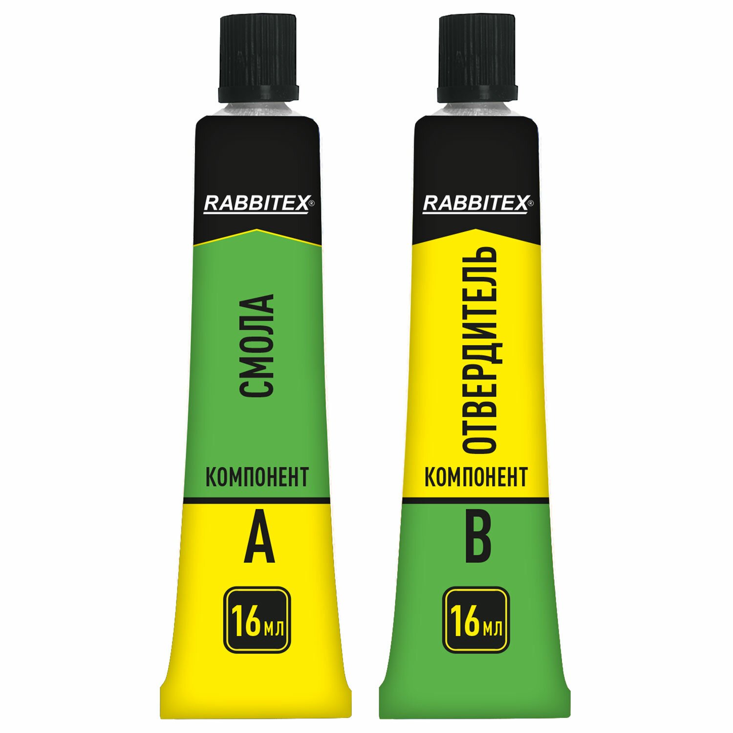 Клей эпоксидный смола+отвердитель, две тубы, суперпрочный, 2х16 мл, RABBITEX, 609816
