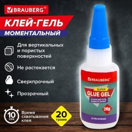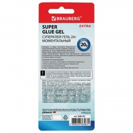 Клей-Гель моментальный ультрапрочный суперклей BRAUBERG EXTRA, 20 г, МАКСИМАЛЬНЫЙ ОБЪЕМ, 608102