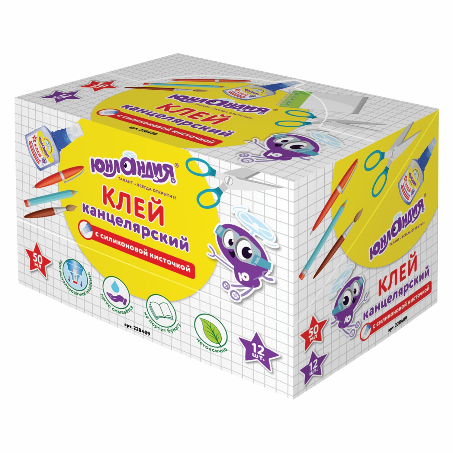 Клей канцелярский ЮНЛАНДИЯ, 50 мл, с силиконовой кисточкой, 228409