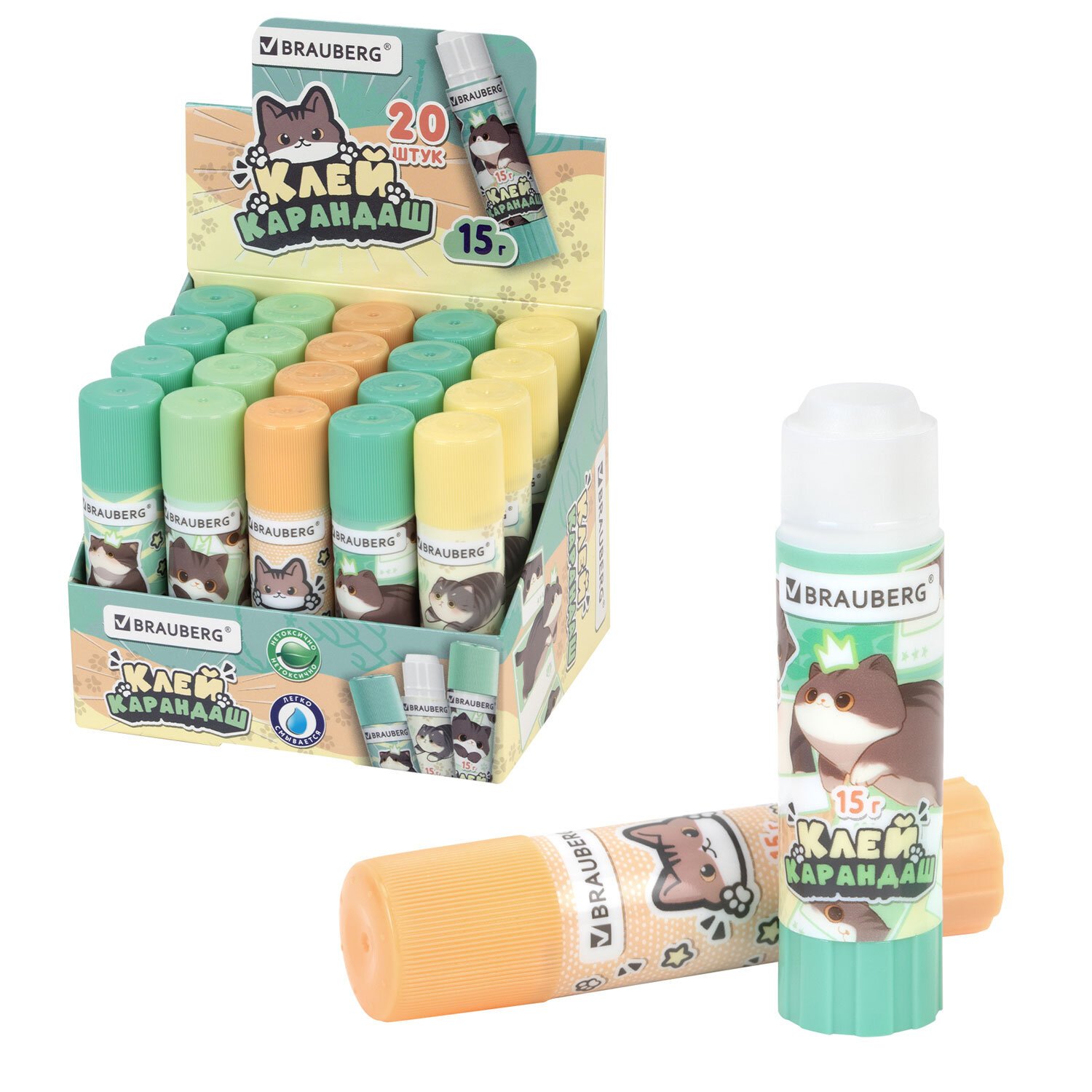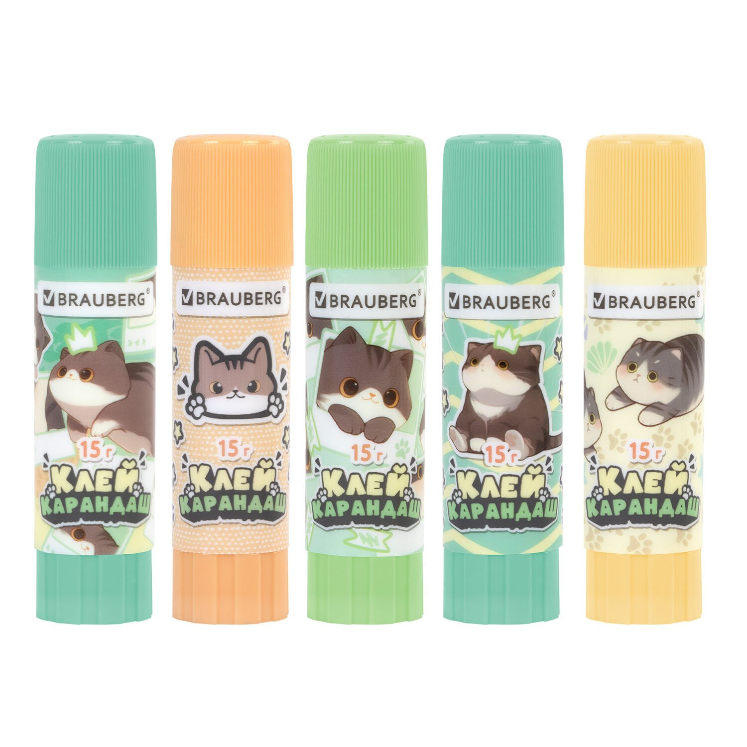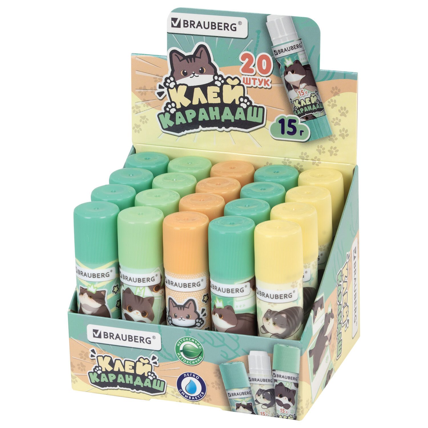 Клей-карандаш 15 г, кросс-серия МИЛЫЕ КОТЫ, ассорти, BRAUBERG, 273228