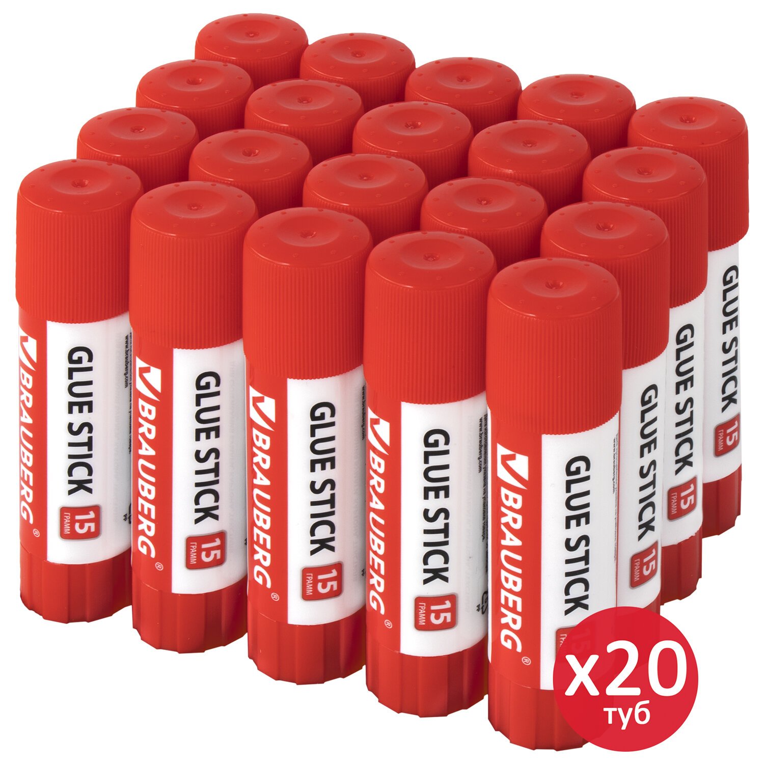 Клей-карандаш 15 г ВЫГОДНАЯ УПАКОВКА, КОМПЛЕКТ 20 штук, BRAUBERG, 229469