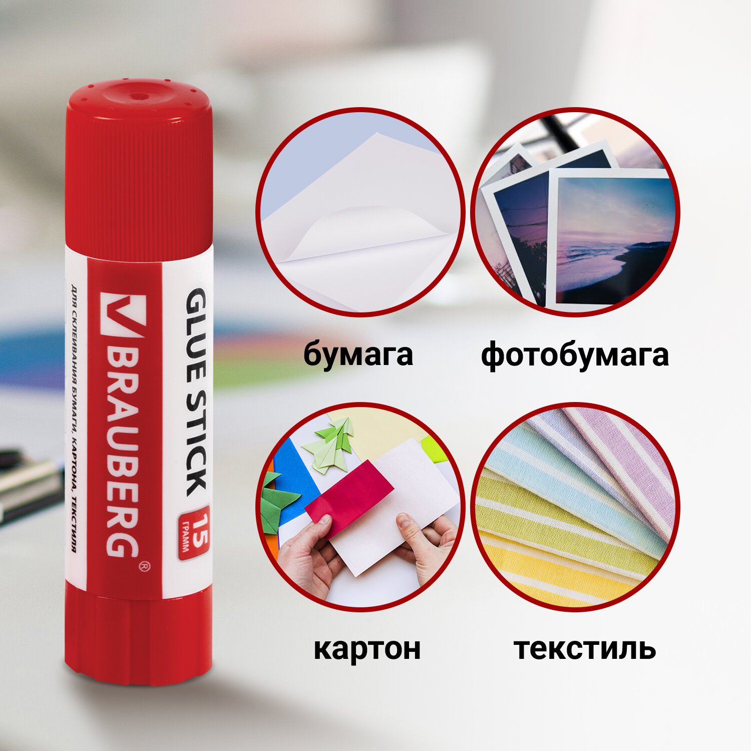 Клей-карандаш BRAUBERG гарантирует надежное склеивание бумаги, картона и фотобумаги. Идеально подходит для офиса, дома и школы.
