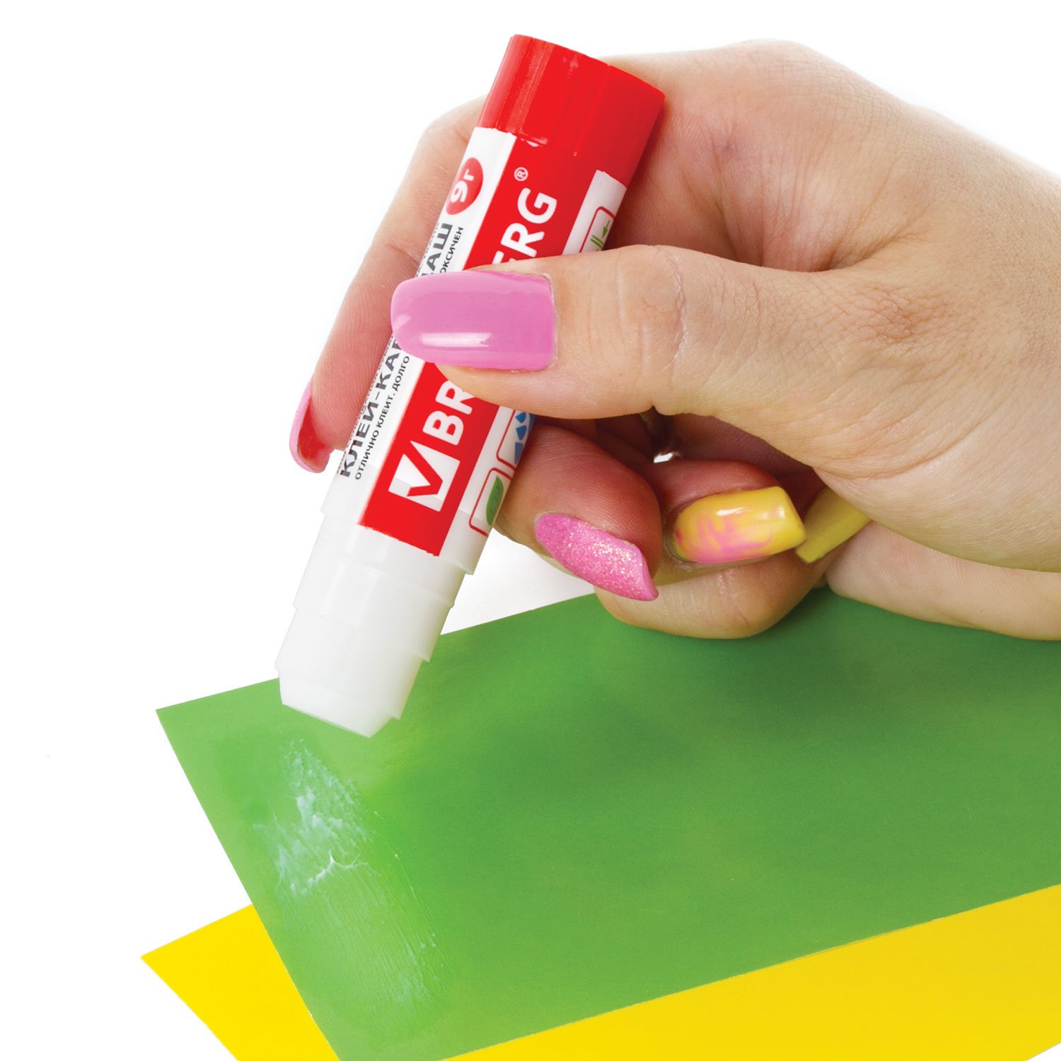 После нанесения высыхает без образования пятен. Не токсичен, не вызывает аллергии и безопасен для здоровья. Легко наносится и распределяется по поверхности, оставляя тонкий и ровный клеевой слой, что позволяет расходовать его экономично. Клей удобен в использовании. Он не пачкает руки, стол, одежду, не попадает на участки бумаги, расположенные возле места склеивания. Обеспечивает быстрое и надежное склеивание. Компактный объем — 9 г. Увеличенный срок годности — 5 лет.