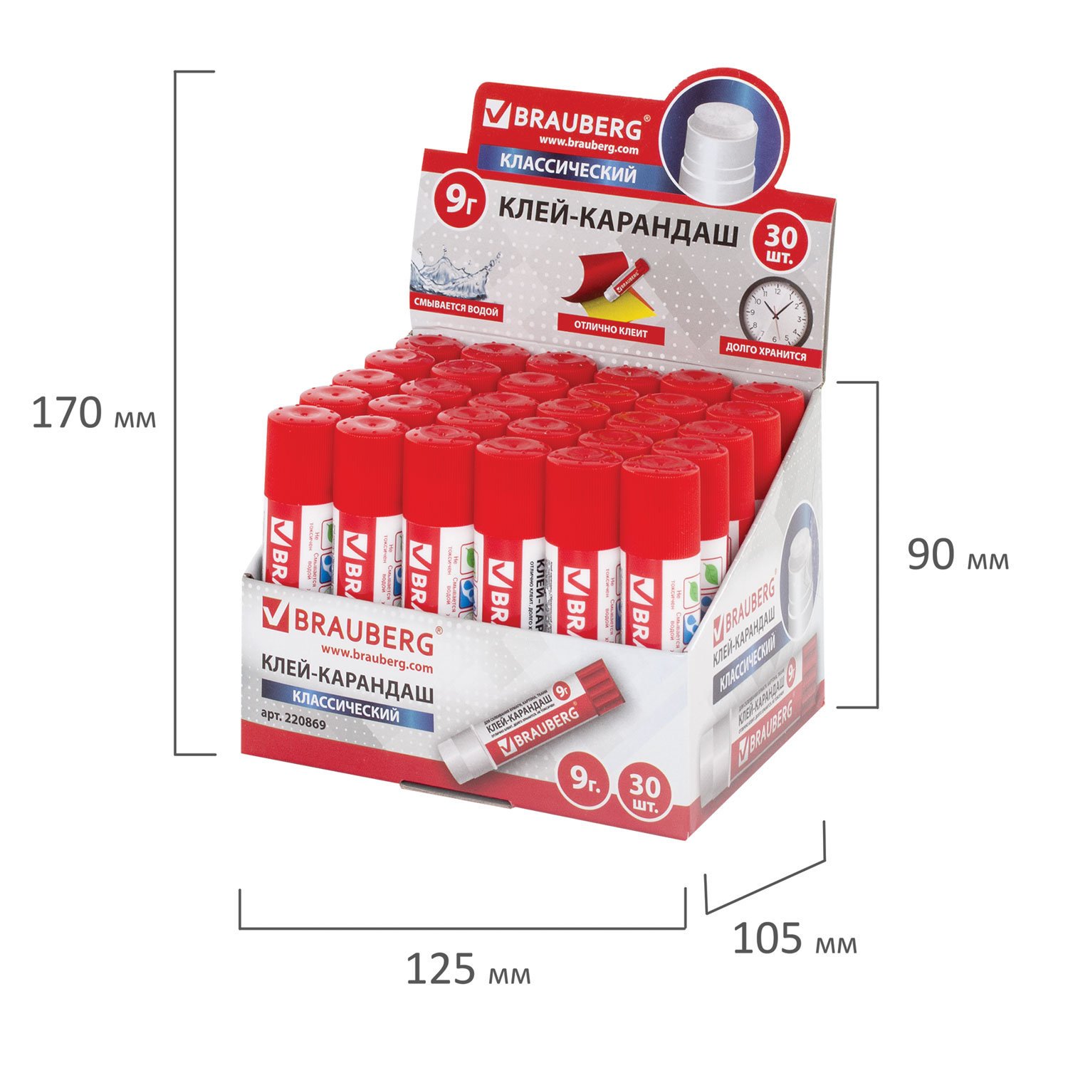 Клей-карандаш BRAUBERG, 9 г, 220869