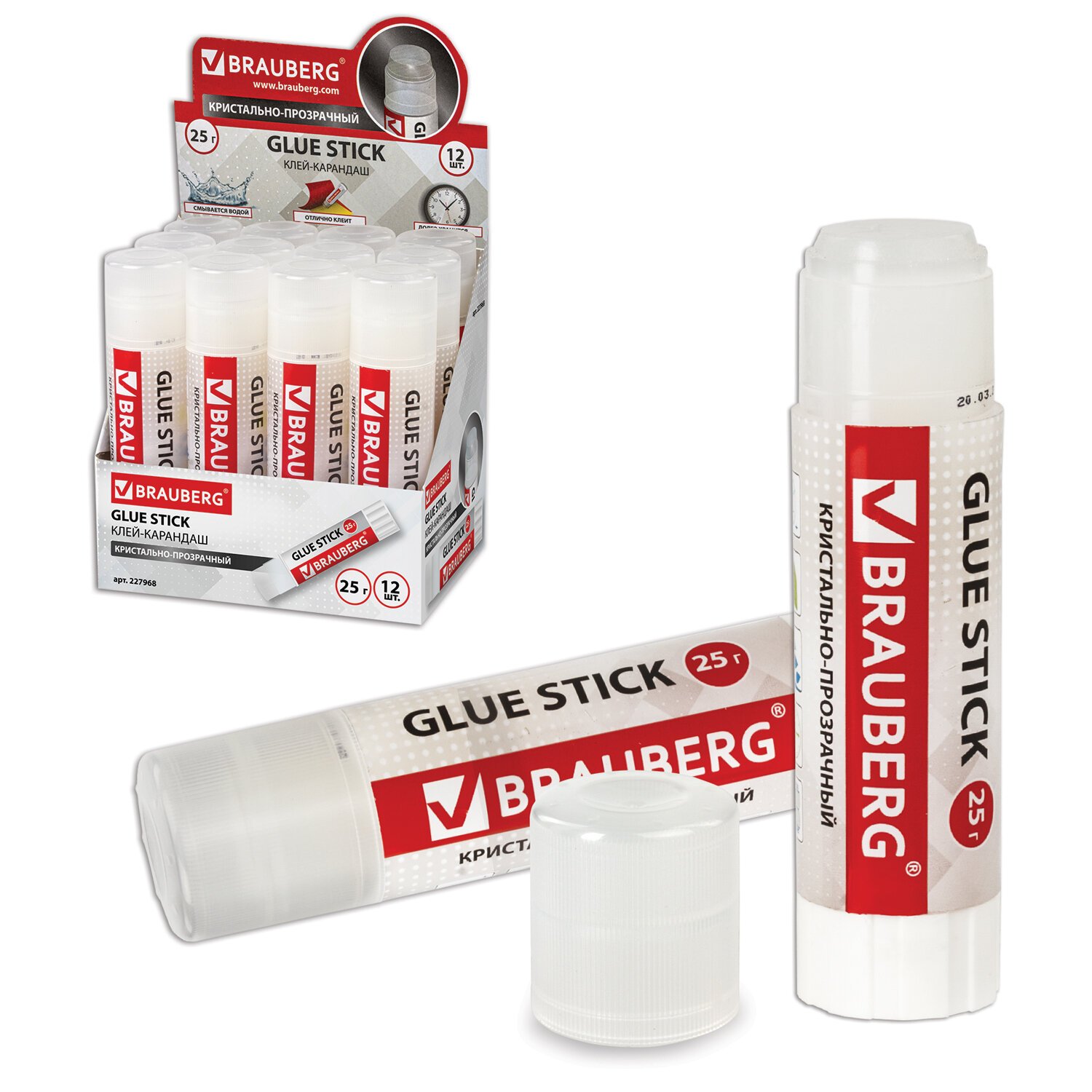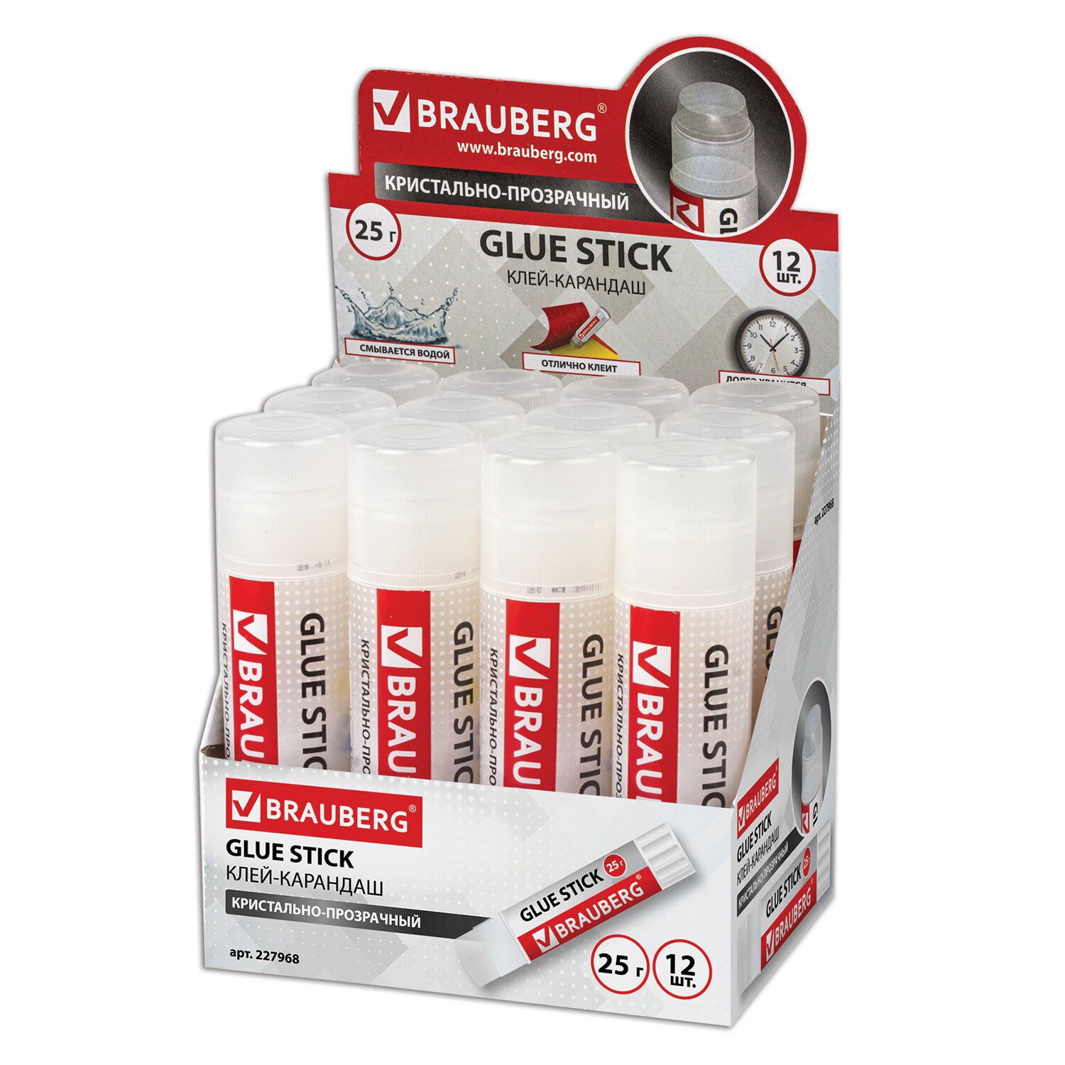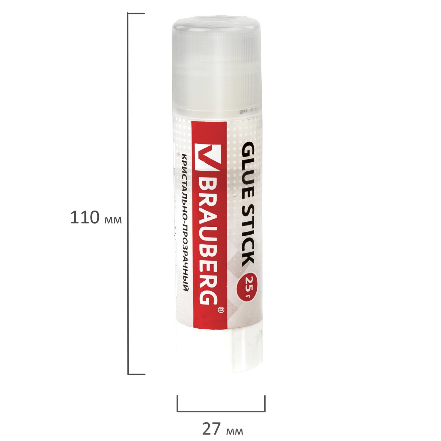 Клей-карандаш BRAUBERG "Crystal", 25 г, прозрачный, 227968, PVP