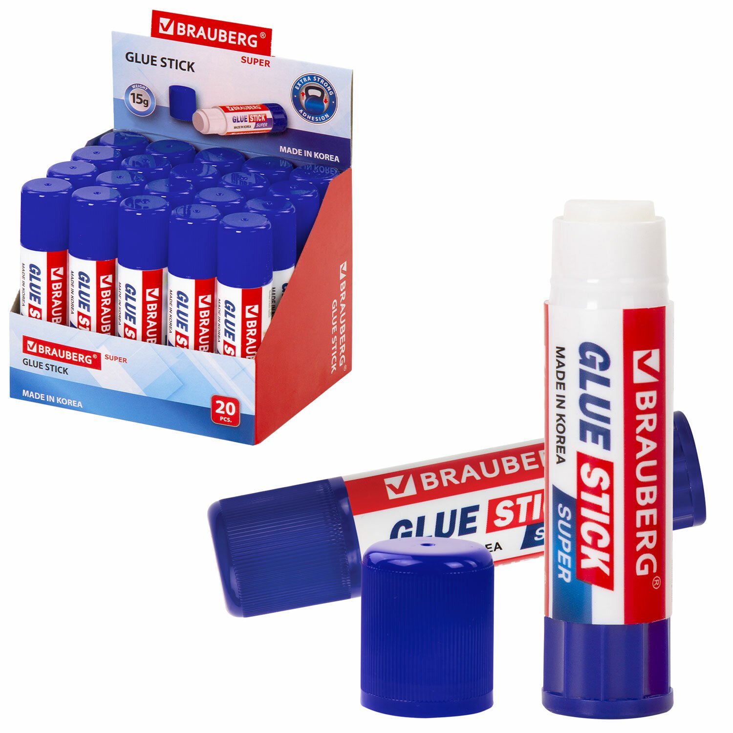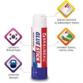 Клей-карандаш BRAUBERG SUPER, 15 г, ЮЖНАЯ КОРЕЯ, 229541
