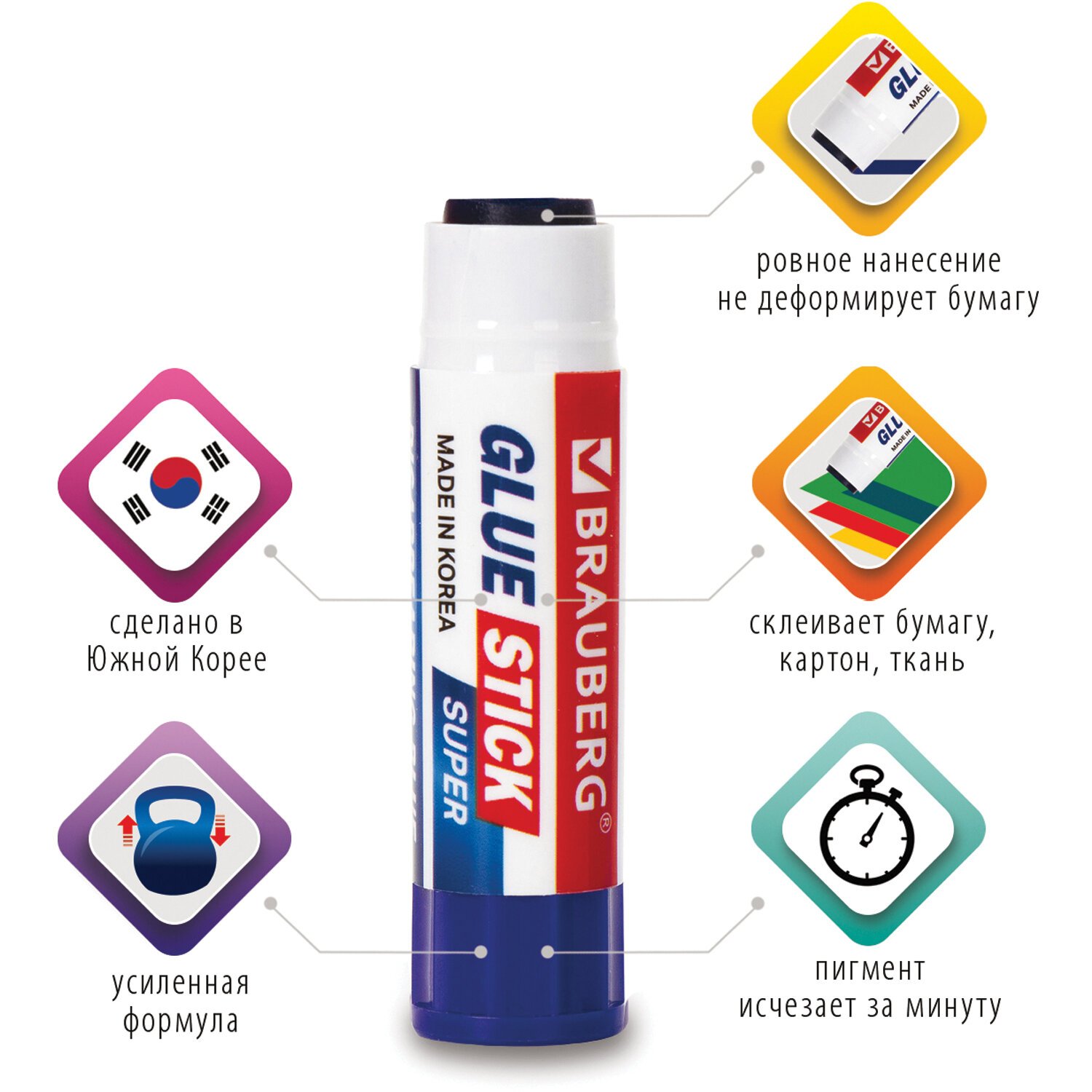 Клей-карандаш BRAUBERG SUPER, 8 г, обесцвечивающийся после высыхания, ЮЖНАЯ КОРЕЯ, 229544