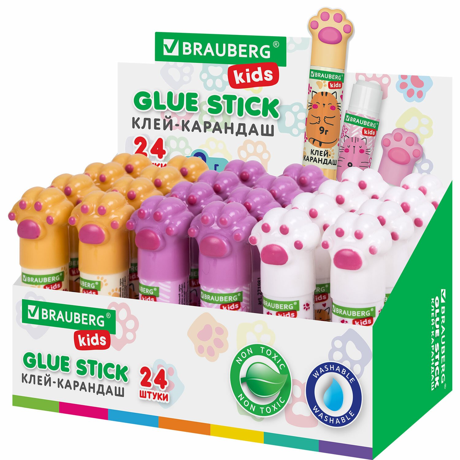 Клей-карандаш BRAUBERG KIDS "Лапки" Cat Paw с колпачком в форме кошачьей лапки идеально подходит для занятий творчеством в игровой форме в детском саду, школе и дома.