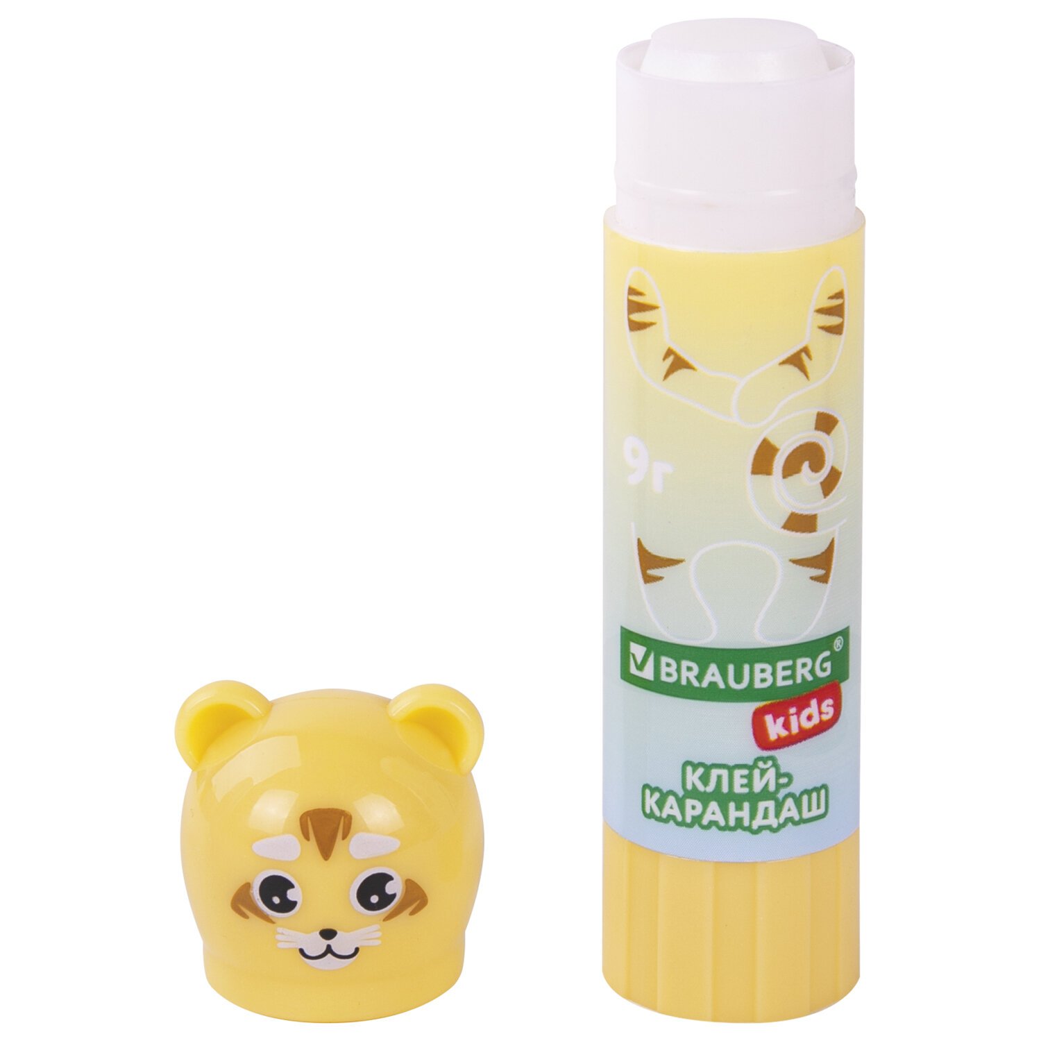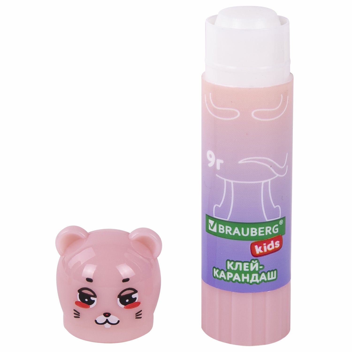 Клей-карандаш "Зверята: кошка, мышка, хрюшка", 9 г, фигурный колпачок, BRAUBERG KIDS, 271138