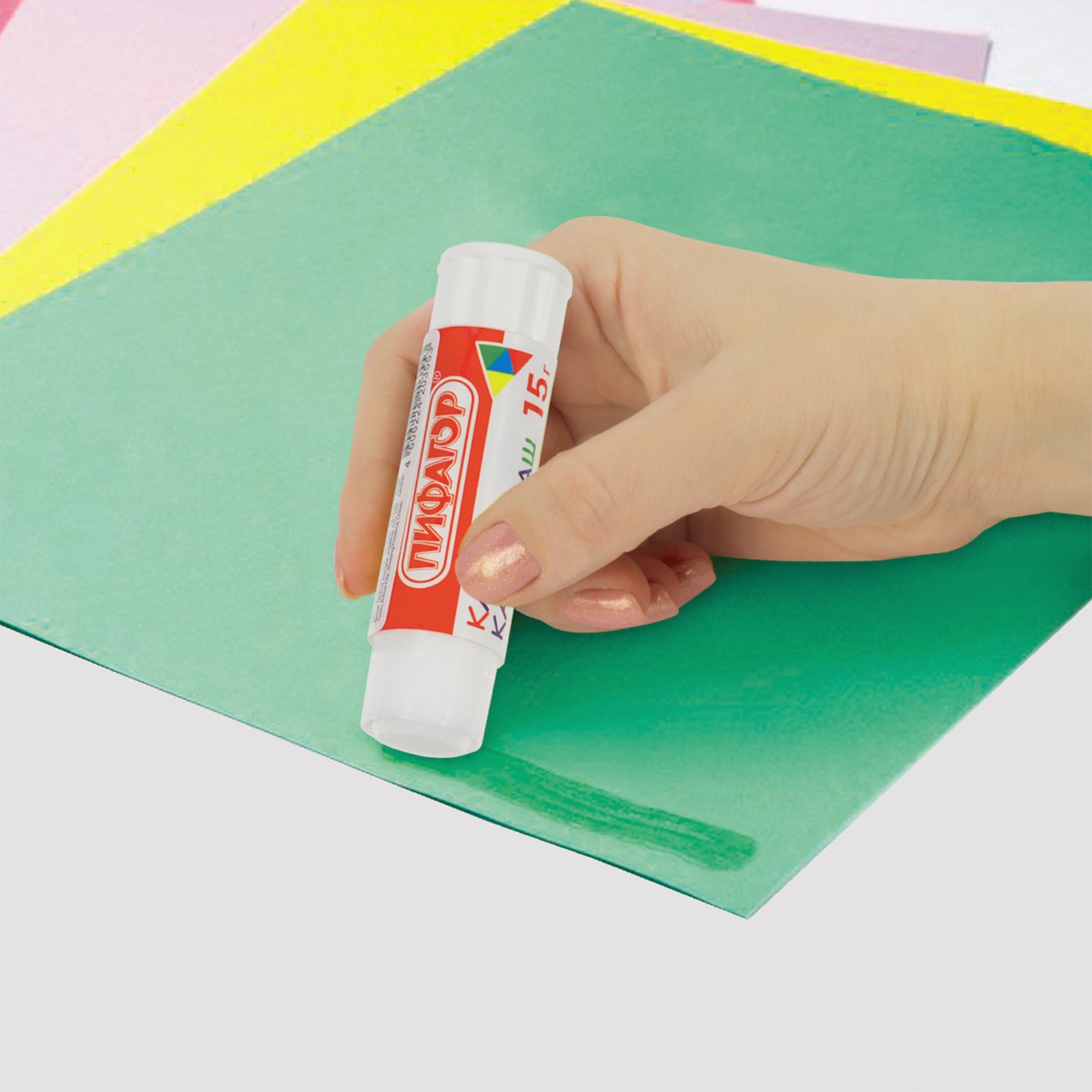 Объем - 15 г. Клей-карандаш ПИФАГОР легко наносится и распределяется по поверхности. Не токсичен и безопасен для здоровья. Клей-карандаш удобен в использовании: он не пачкает руки, стол, одежду; легко удаляется при помощи воды. Плотно прилегающий колпачок предотвращает высыхание клея.