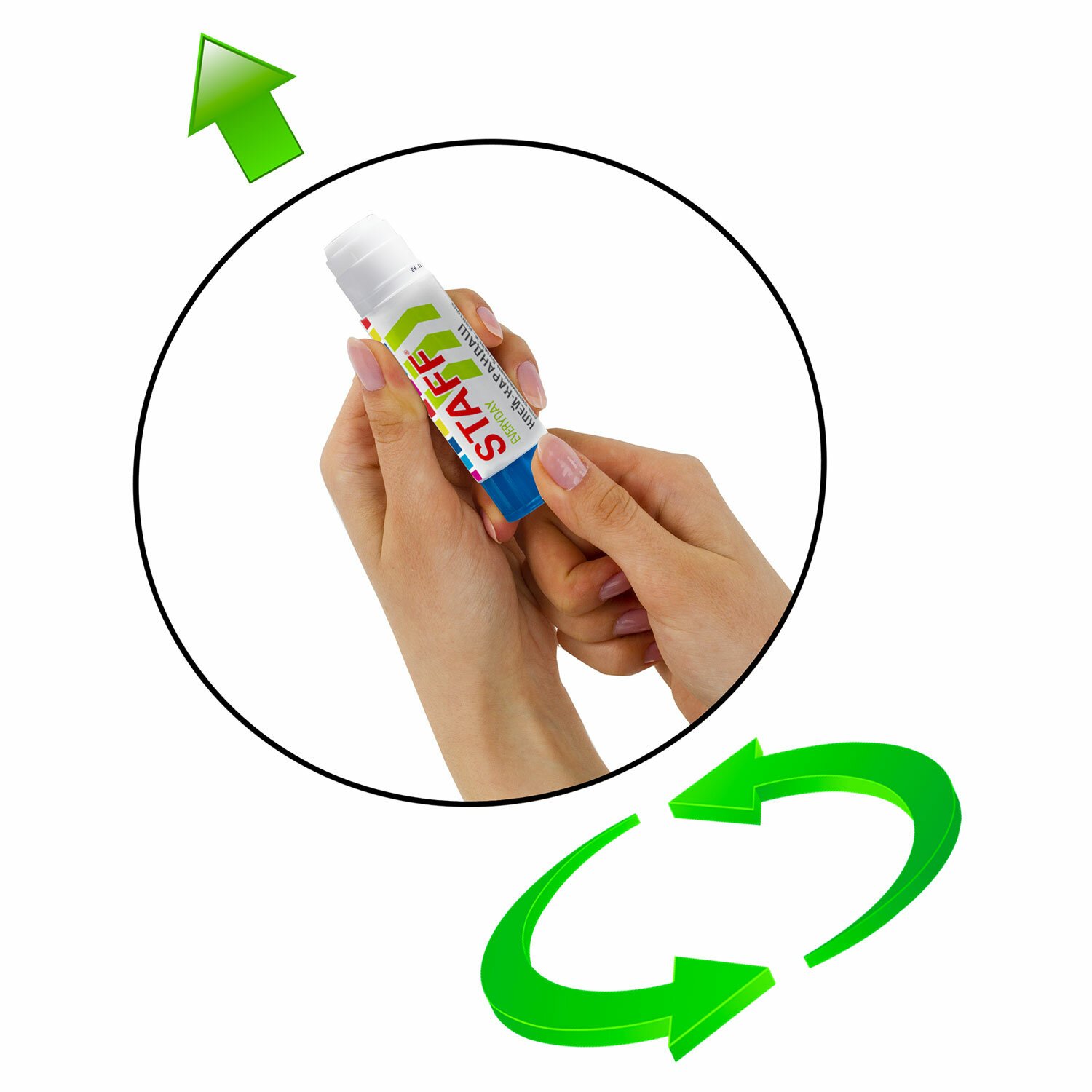 Объем - 24 г. Клей-карандаш STAFF легко наносится и распределяется по поверхности. Не токсичен и безопасен для здоровья. Клей-карандаш STAFF удобен в использовании: он не пачкает руки, стол, одежду; легко удаляется при помощи воды. Плотно прилегающий колпачок предотвращает высыхание клея. Срок годности - 3 года.