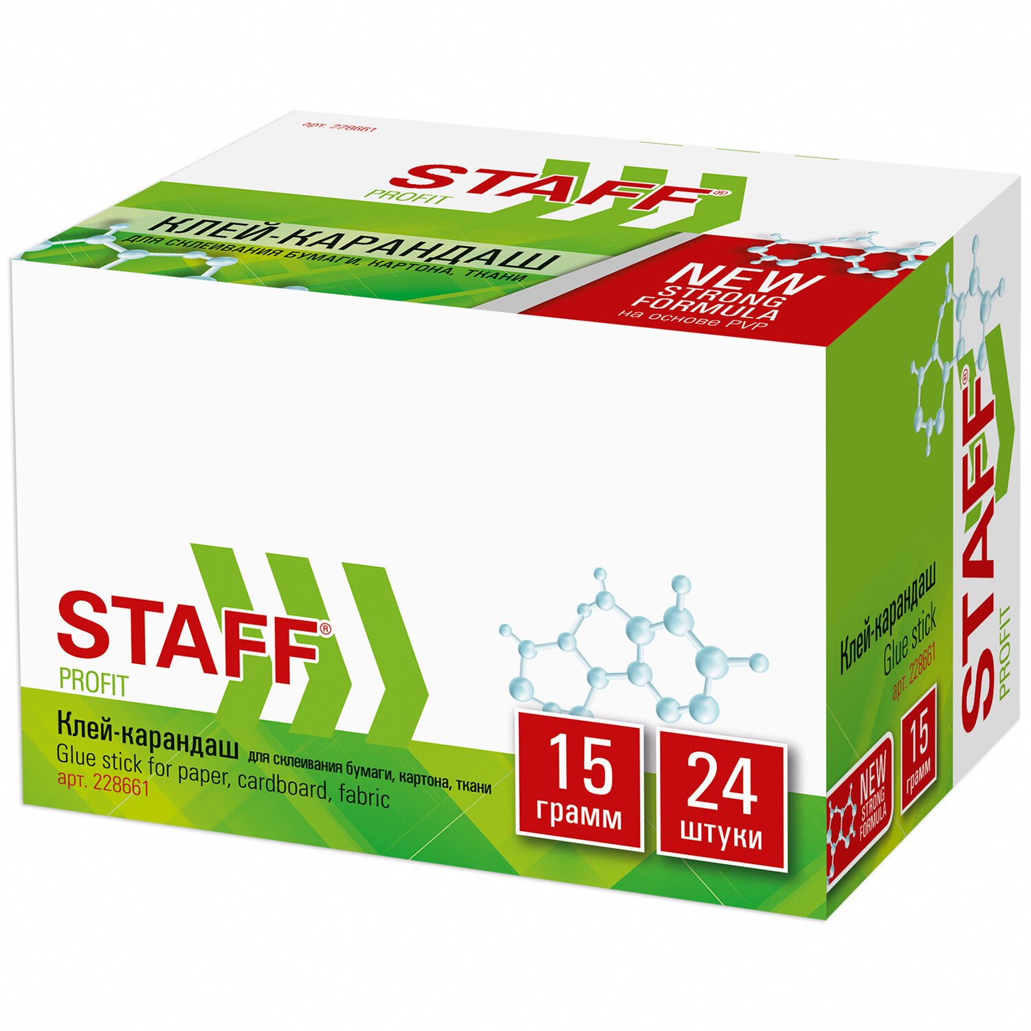 Клей-карандаш УСИЛЕННЫЙ STAFF Profit, 15 г, PVP-основа, 228661