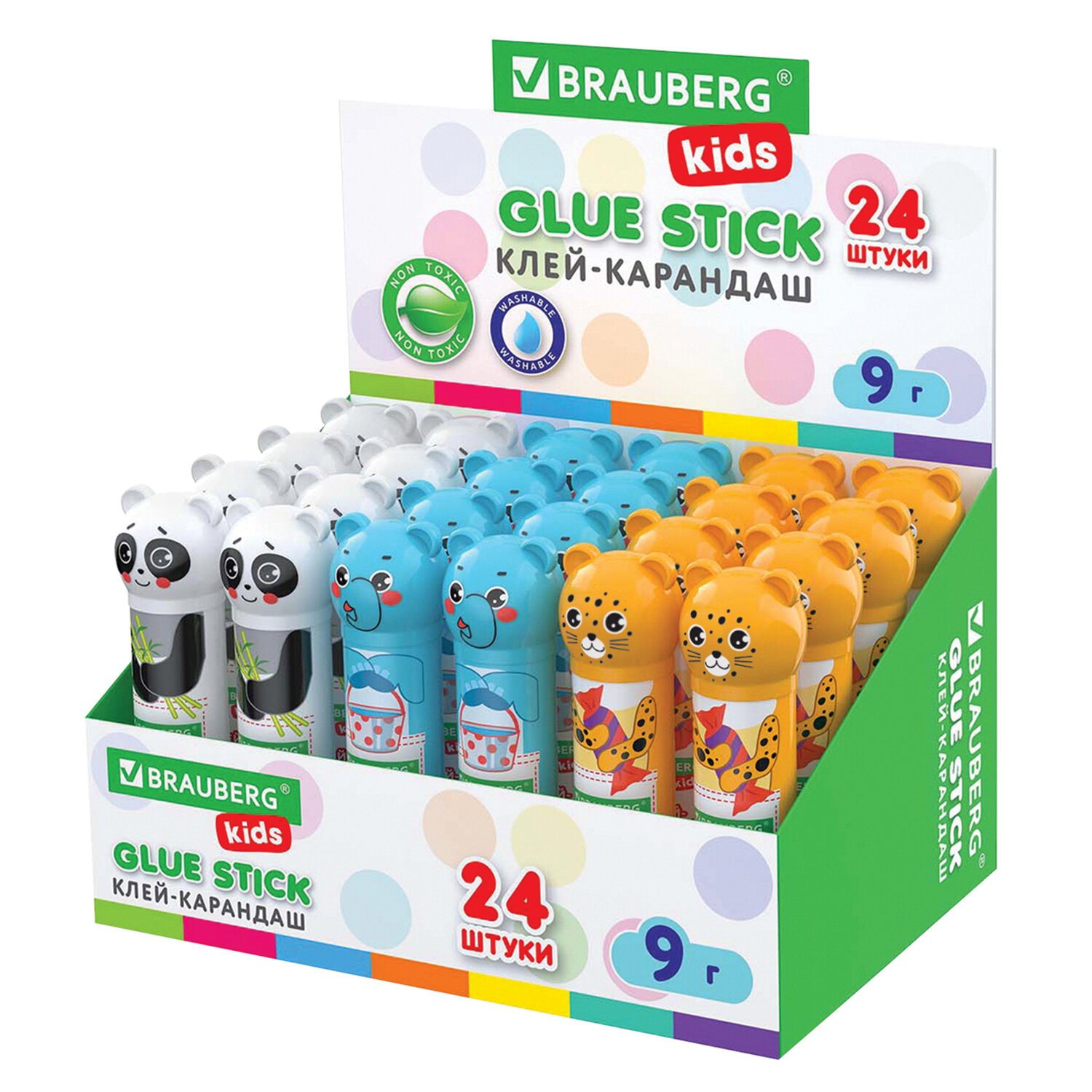 Клей-карандаш BRAUBERG KIDS "Зверята: панда, слон и леопард" с колпачком в виде животных идеально подходит для занятий творчеством в игровой форме в детском саду, школе и дома.