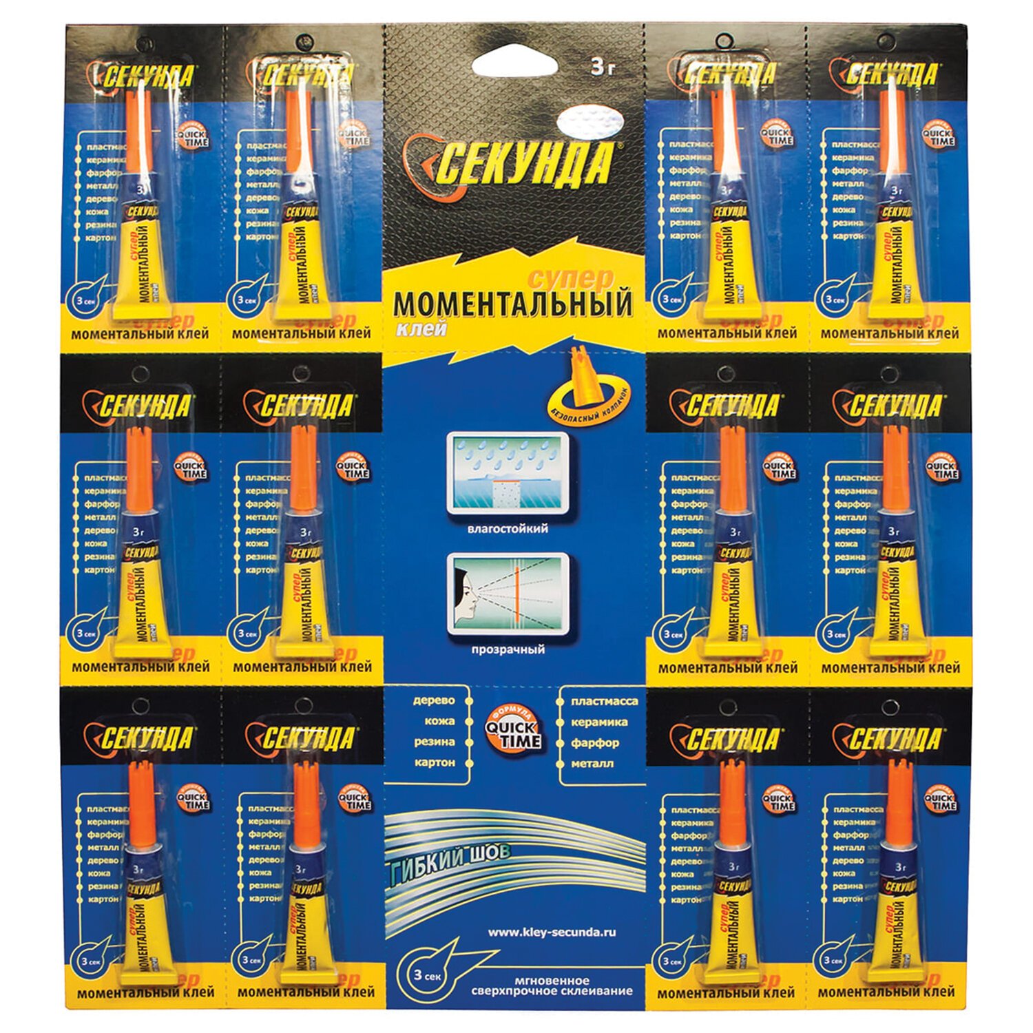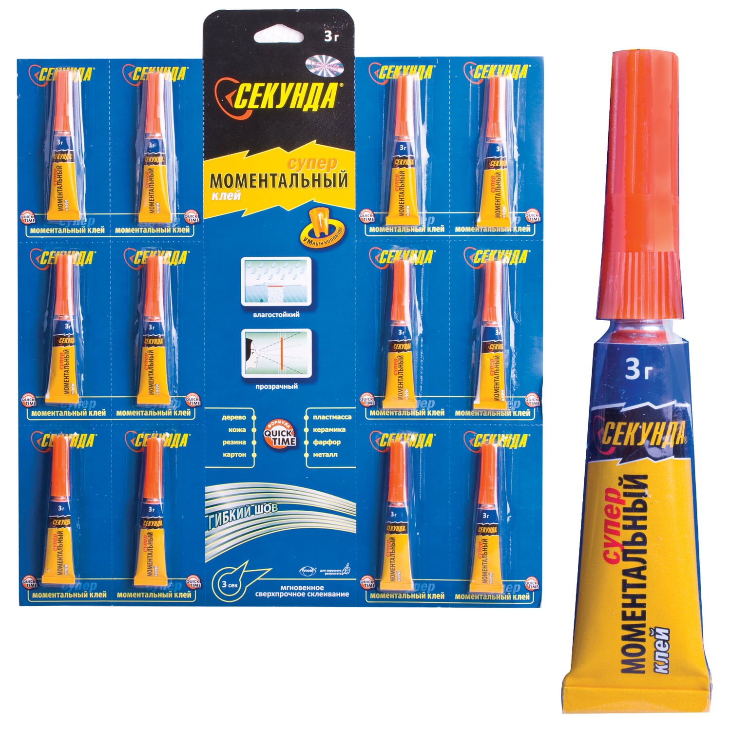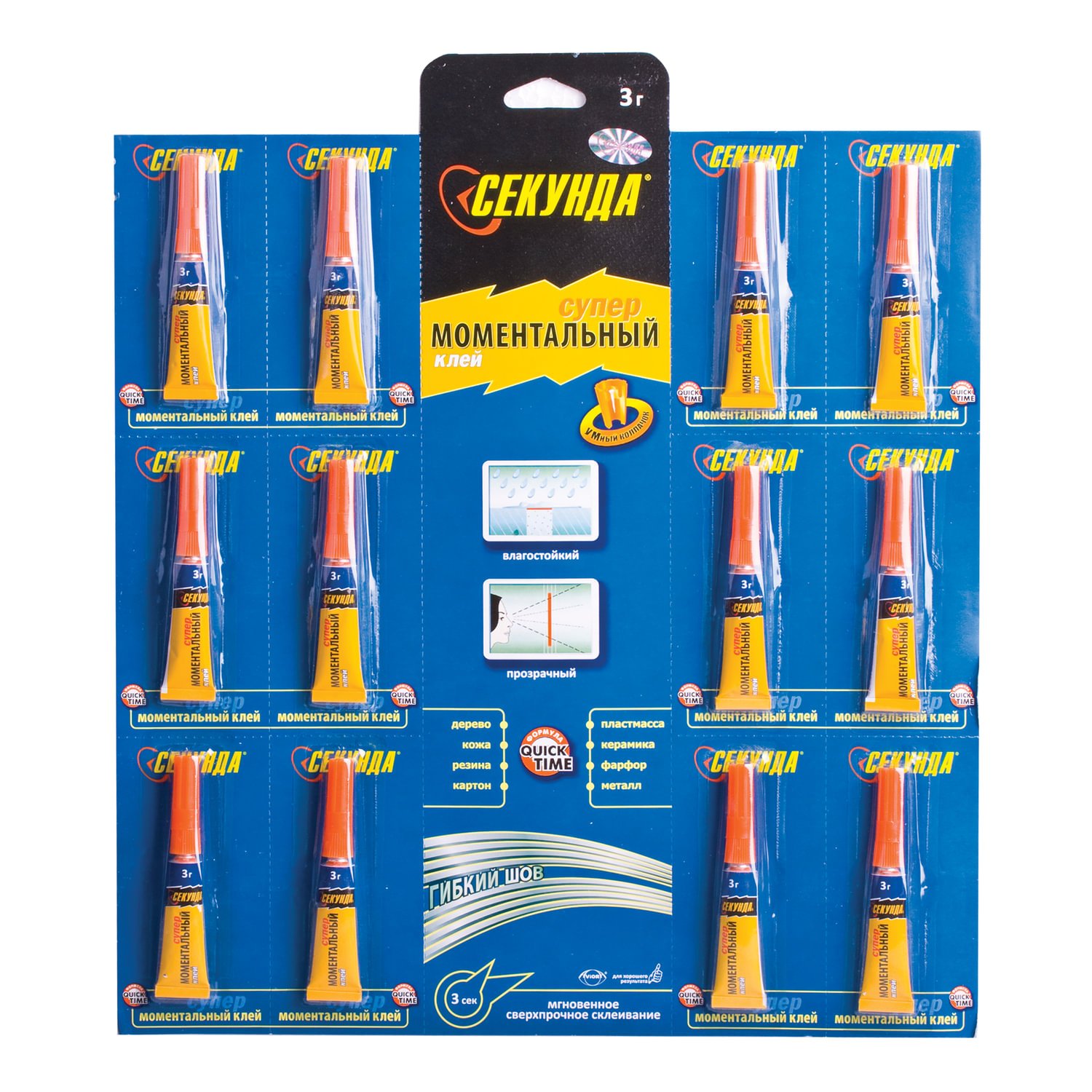 Клей моментальный СЕКУНДА, 3 г, отрывная мультикарта, 403-103