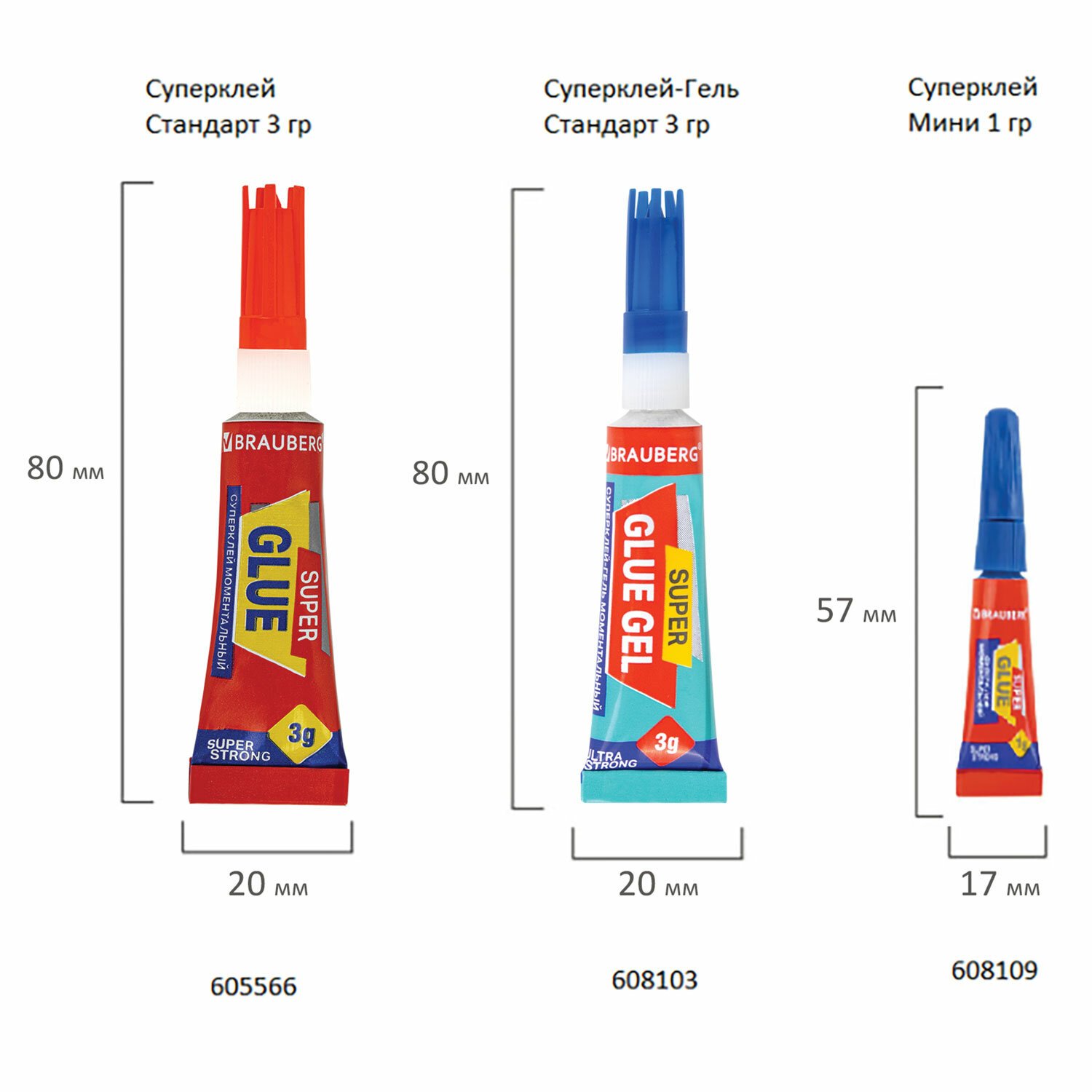 Клей-Гель моментальный (1 шт.), ультрапрочный суперклей BRAUBERG EXTRA, отрывная мультикарта, 3 г, 608103