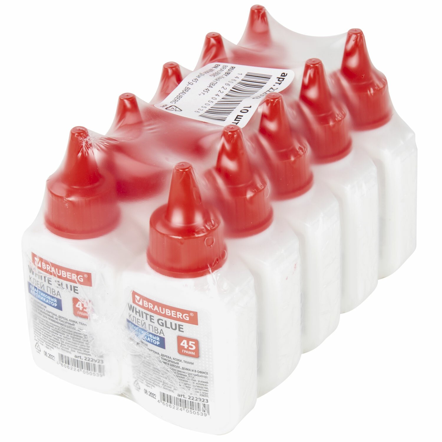 Клей ПВА КОМПЛЕКТ 10 штук х 45 г (бумага, картон, дерево), ВЫГОДНАЯ УПАКОВКА, BRAUBERG, 270433, 93