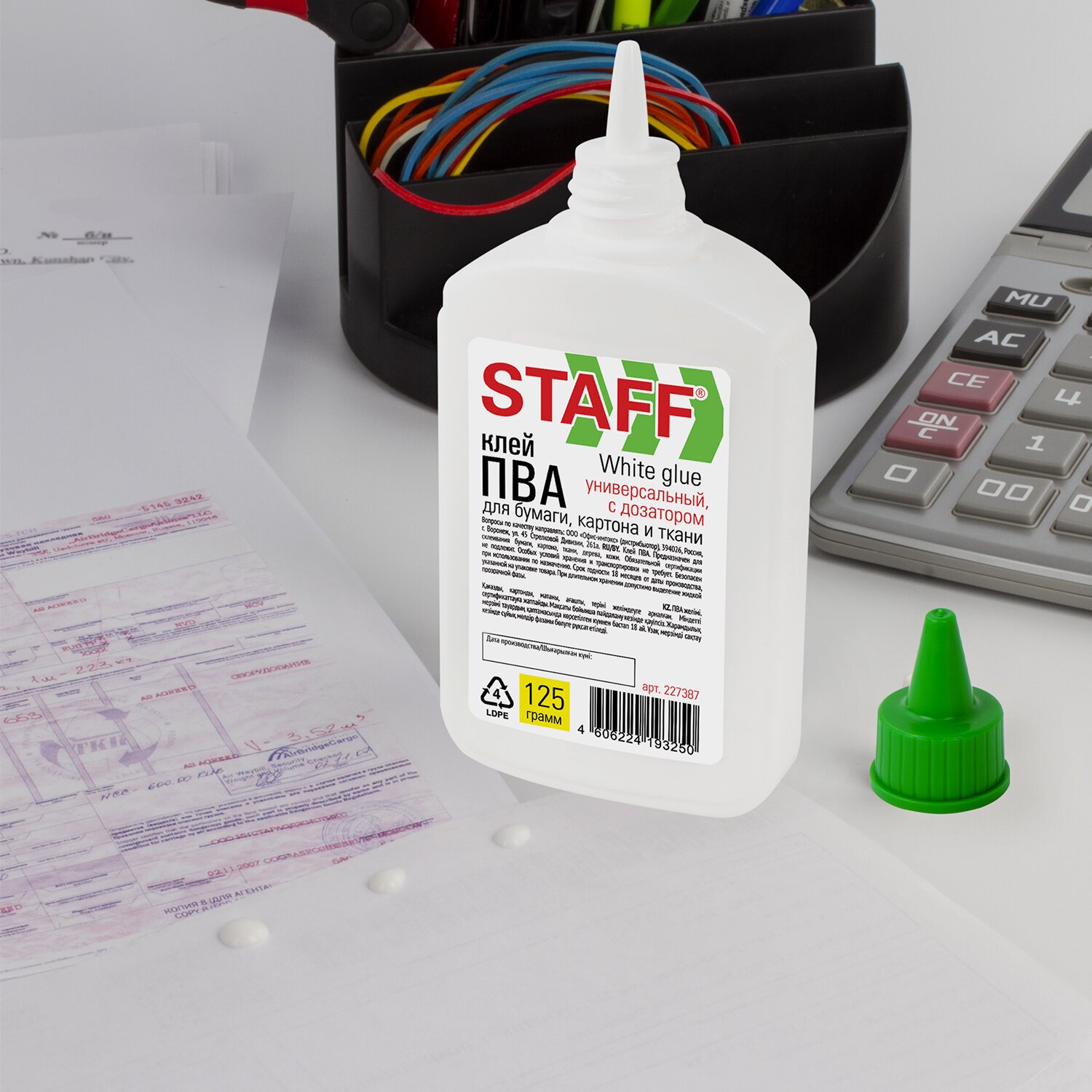 Клей ПВА STAFF EVERYDAY, 125 г, с дозатором, 227387