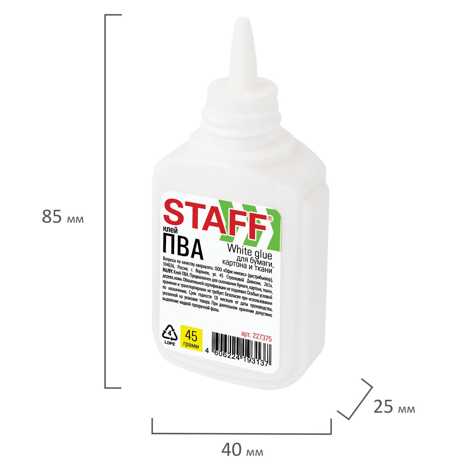 Клей ПВА STAFF EVERYDAY, 45 г, с дозатором, 227375
