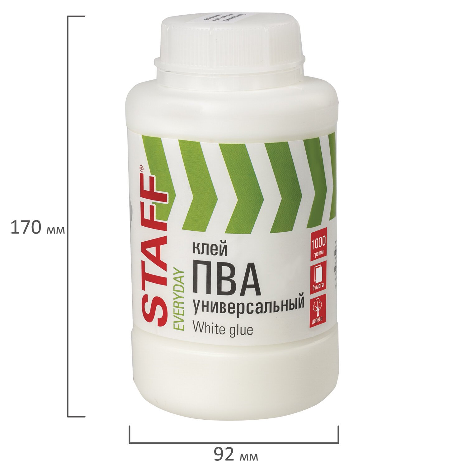 Клей ПВА универсальный 1 кг (бумага, картон, дерево), STAFF, 606431