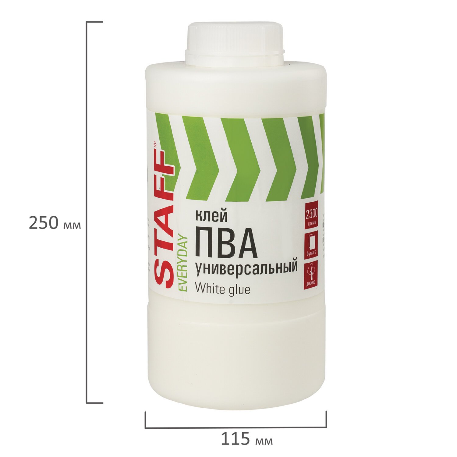 Клей ПВА универсальный 2,3 кг (бумага, картон, дерево), STAFF, 606433