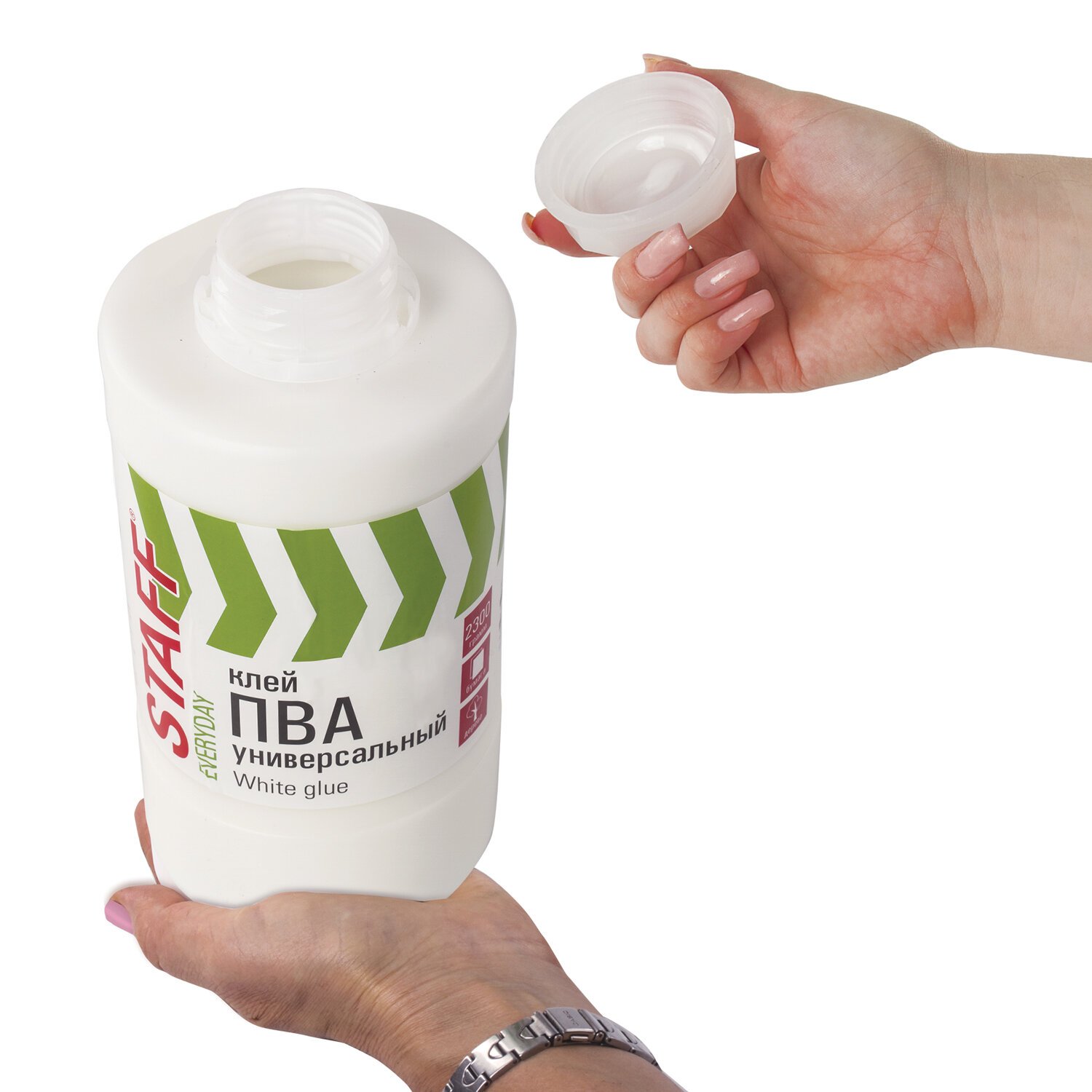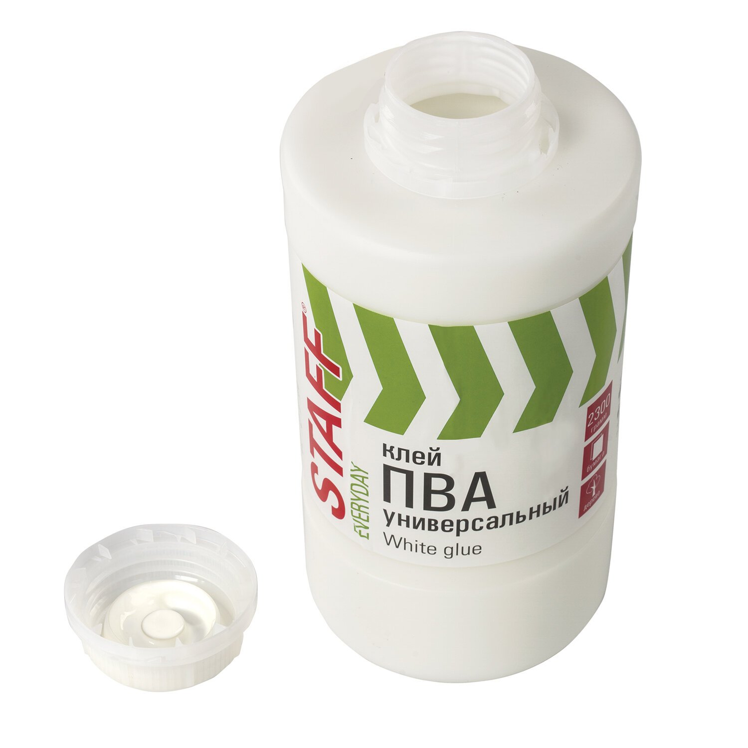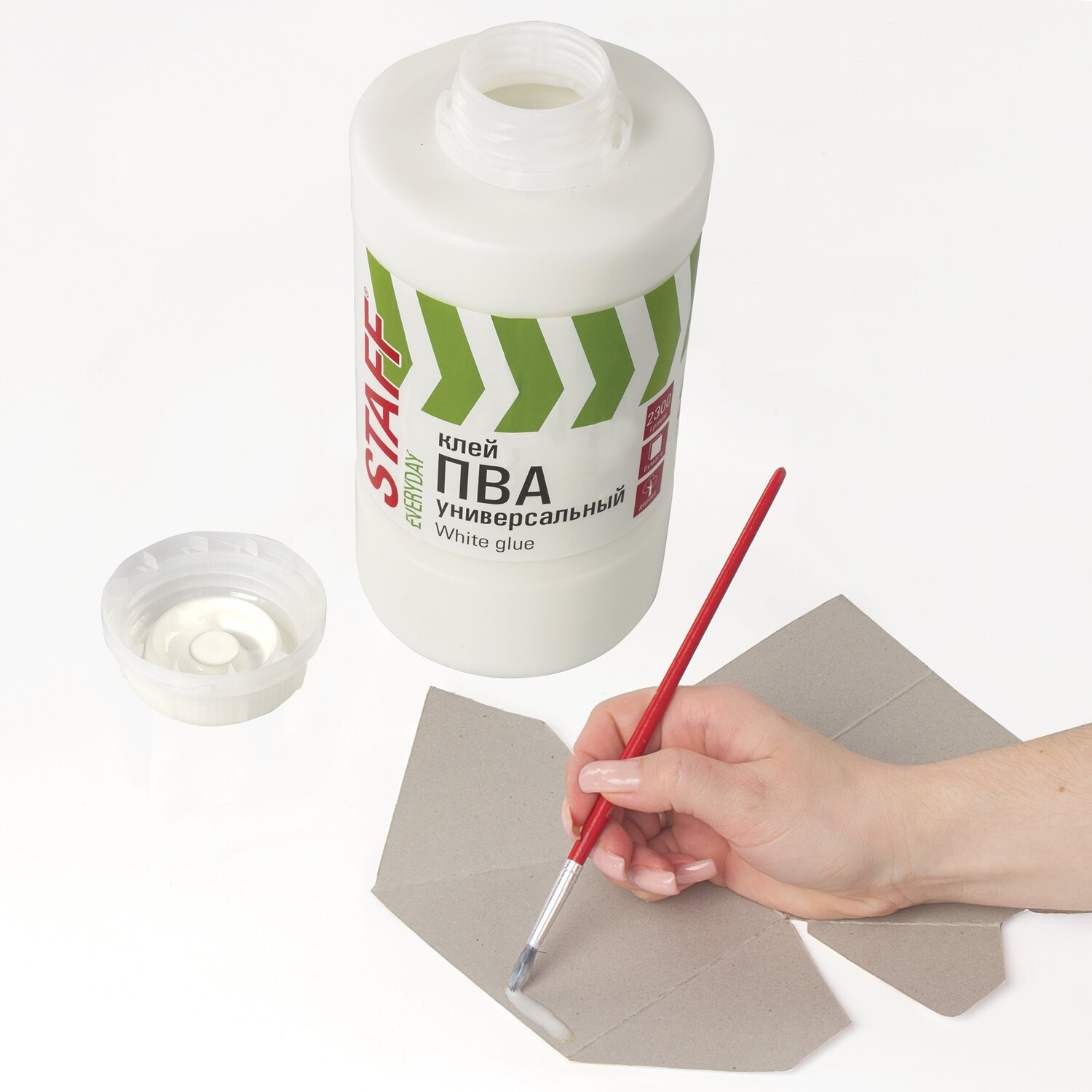 Клей ПВА универсальный STAFF применяется для склеивания изделий из бумаги, картона, тканей, виниловых и бумажных обоев. Может использоваться в качестве модификатора для улучшения технологических и адгезионных свойств.