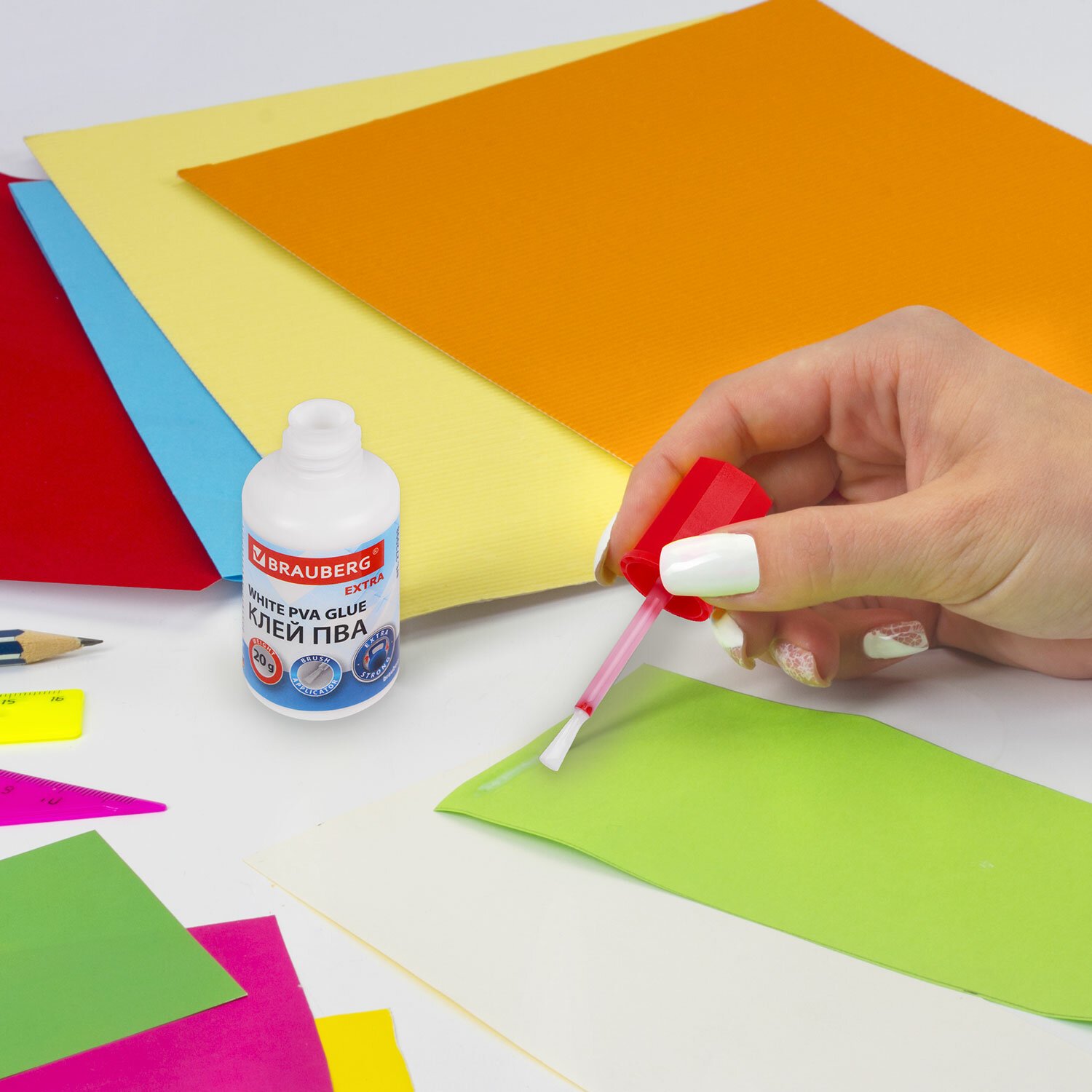 Клей ПВА BRAUBERG Extra идеально подходит для склеивания изделий из бумаги, картона, ткани и фотографий.