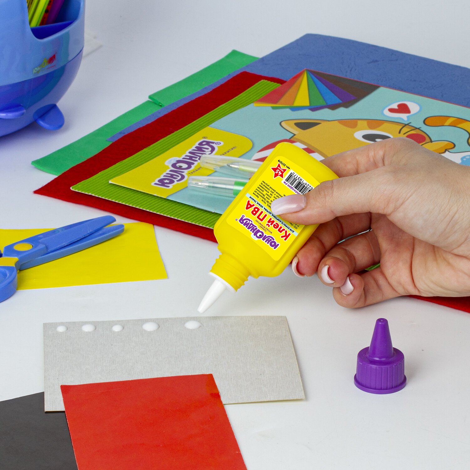 Клей ПВА ЮНЛАНДИЯ предназначен для склеивания изделий из бумаги, картона, а также подходит для ткани и фотографий. Идеальный выбор для детского творчества.