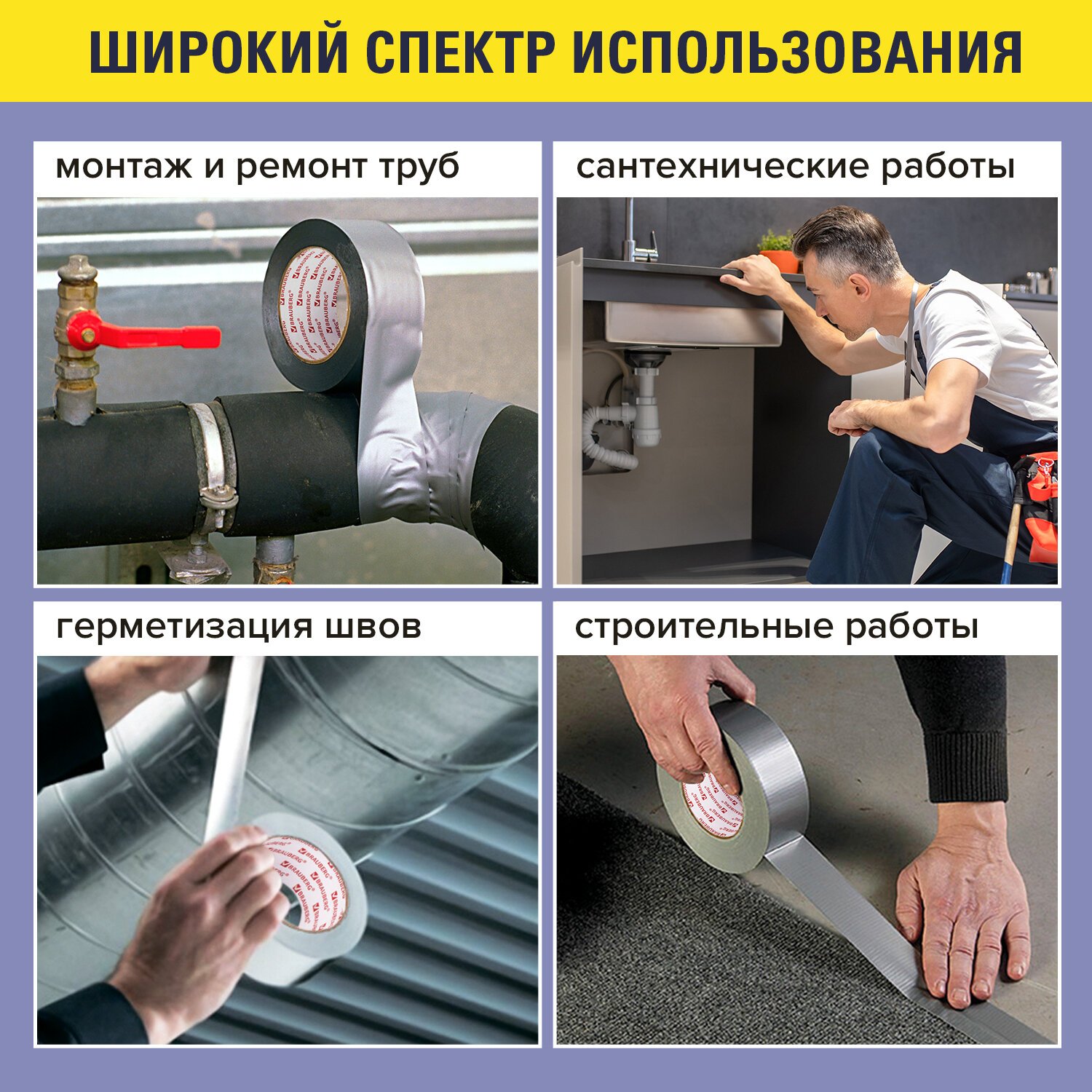Клейкая АРМИРОВАННАЯ лента BRAUBERG предназначена для уплотнения вентиляционных труб, резиновых шлангов, укрывных пленок, герметизации сантехнических труб.