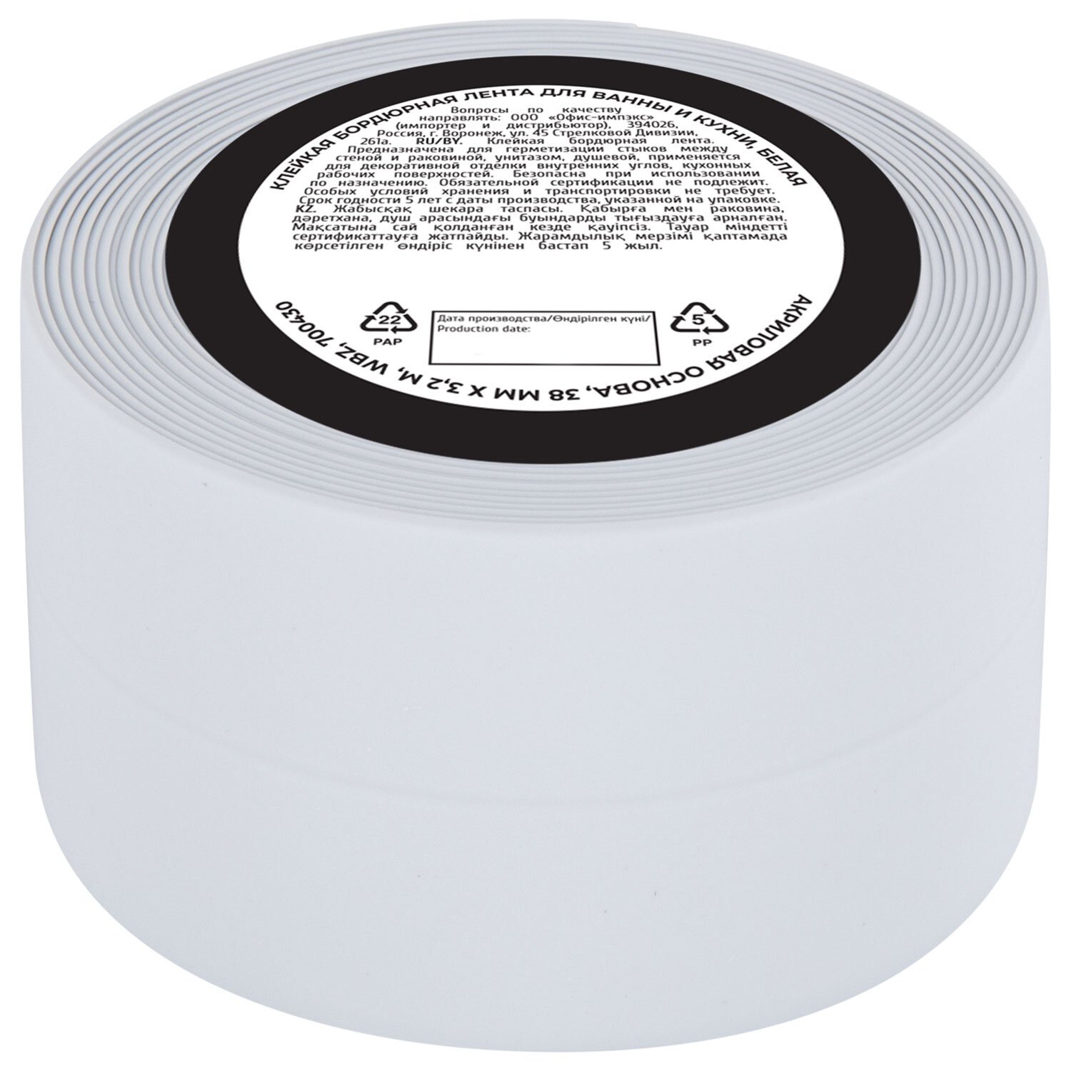 Клейкая лента бордюрная для ванны и кухни 38 мм х 3,2 м, белая, акриловая основа, WBZ, 700430