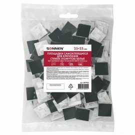 Площадка самоклеящаяся для крепления стяжки (хомута) 25х25 мм, КОМПЛЕКТ 100 штук, белая, SONNEN, 607926