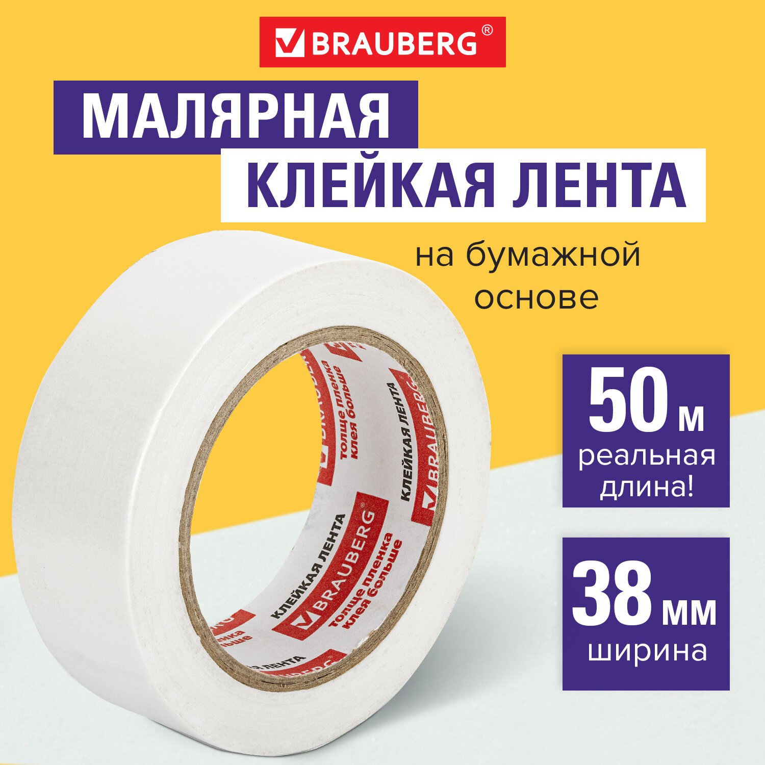 Малярная клейкая лента BRAUBERG на бумажной основе находит широкое применение при проведении штукатурных и лакокрасочных работ, а также используется в быту для заклейки окон.