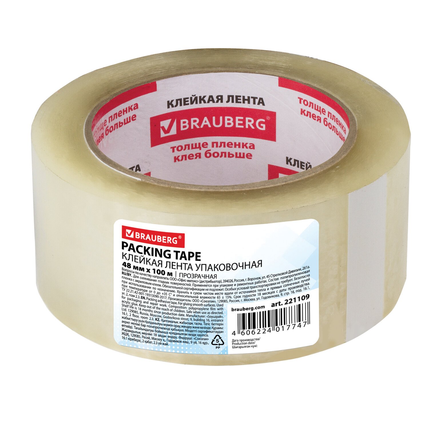Упаковочная клейкая лента BRAUBERG активно используется в торговле, промышленности, быту и подходит для оперативной упаковки с помощью диспенсера или вручную. Отличается высокой адгезией клея (слипанием с поверхностью) и стойкостью к разрыву.