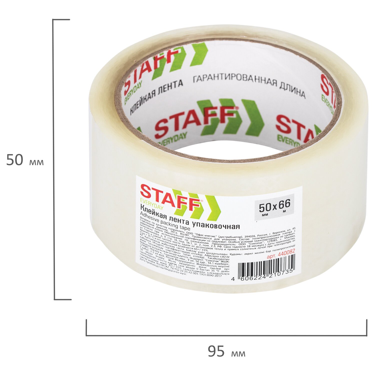 Клейкая лента упаковочная 50 мм x 66 м, прозрачная, толщина 40 микрон, STAFF EVERYDAY, 440082