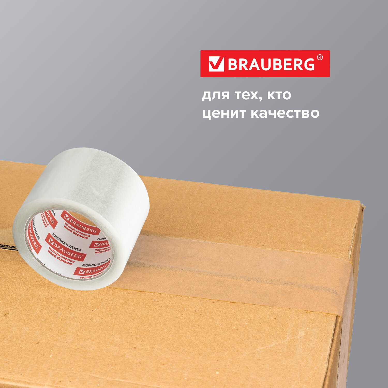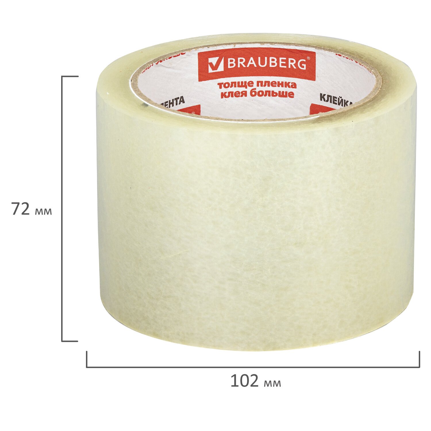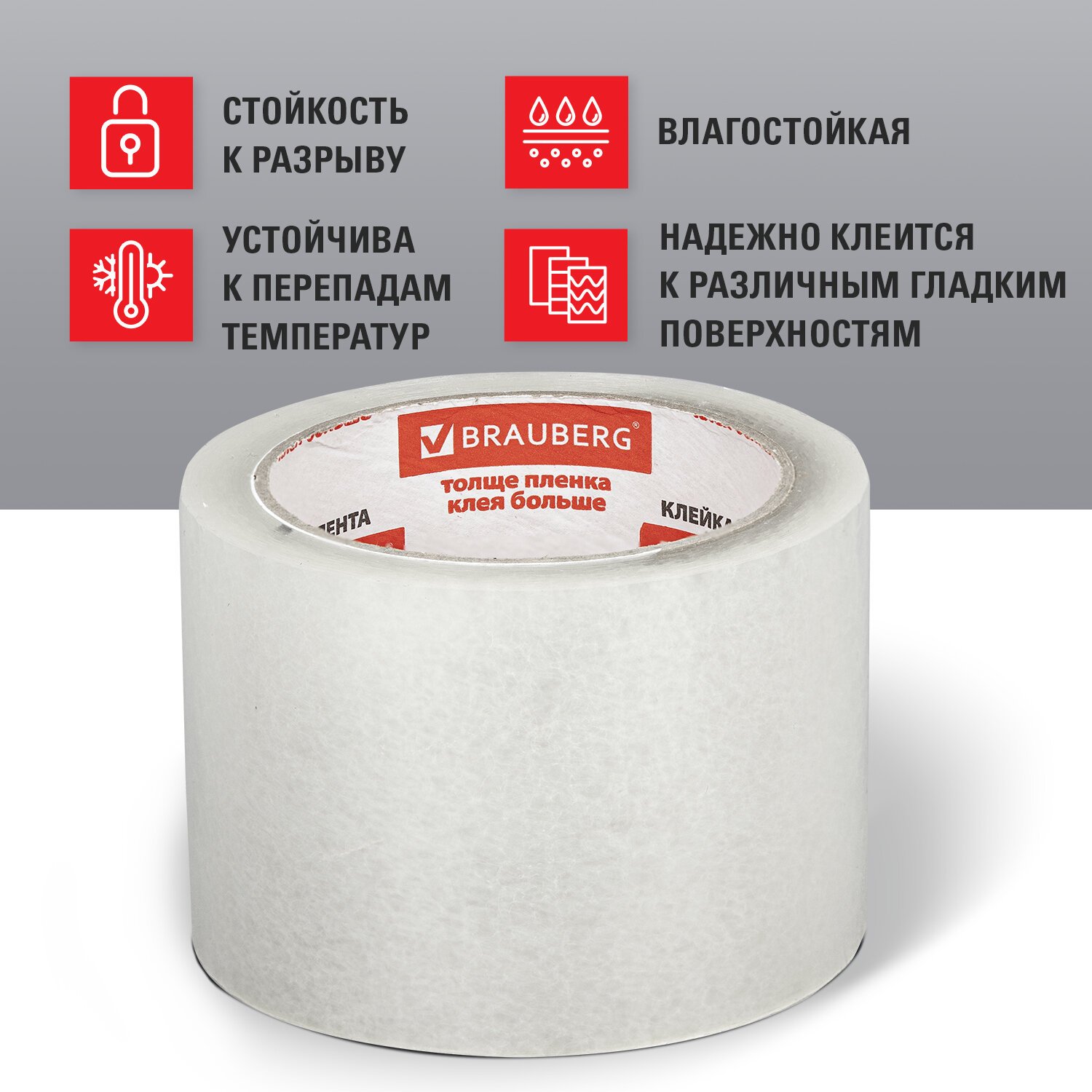 Упаковочная клейкая лента BRAUBERG активно используется в торговле, промышленности, быту и подходит для оперативной упаковки с помощью диспенсера или вручную. Отличается высокой адгезией клея (слипанием с поверхностью) и стойкостью к разрыву.