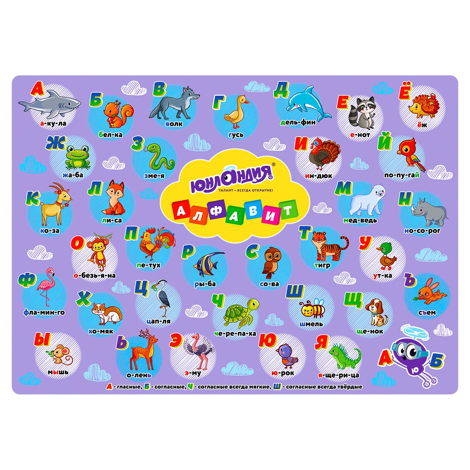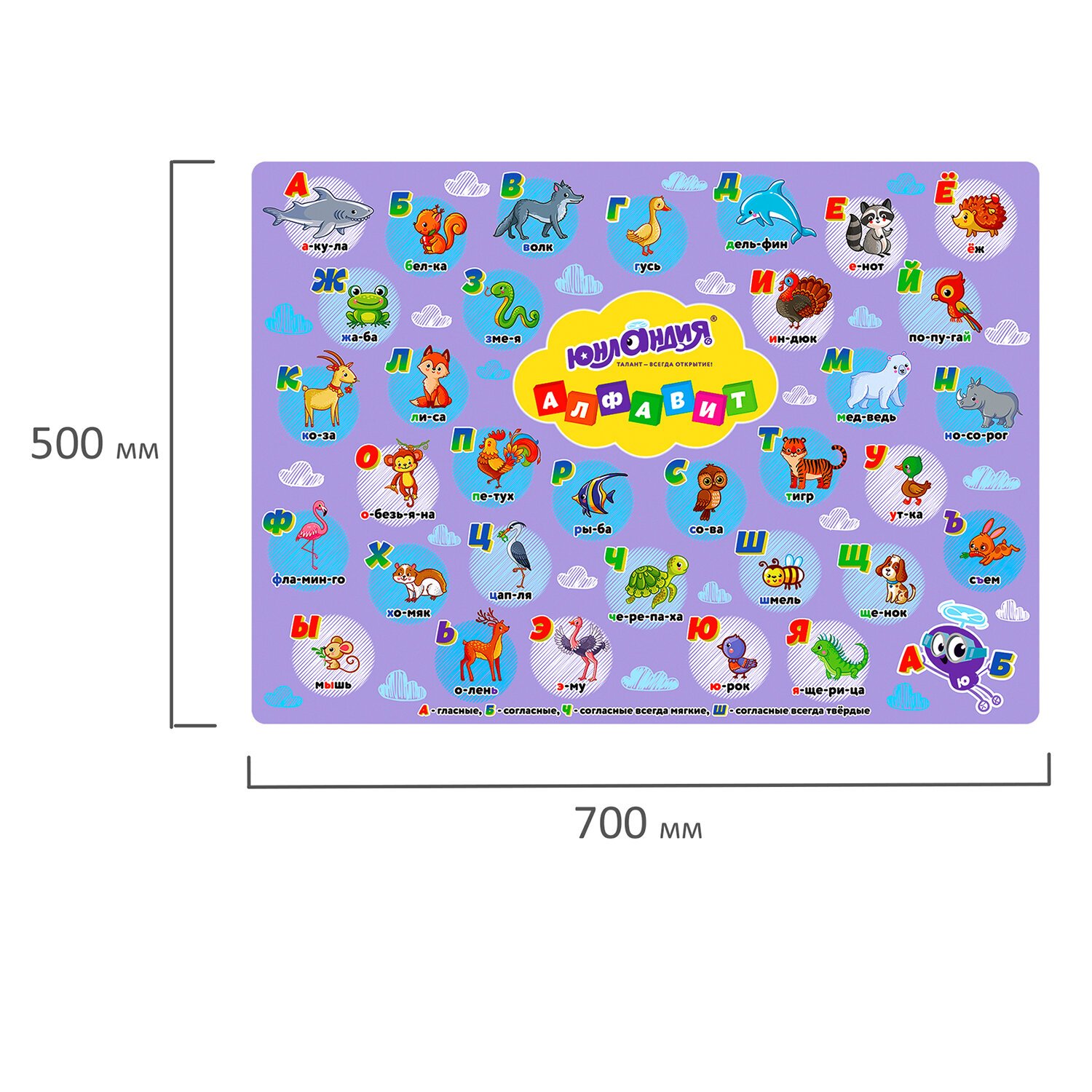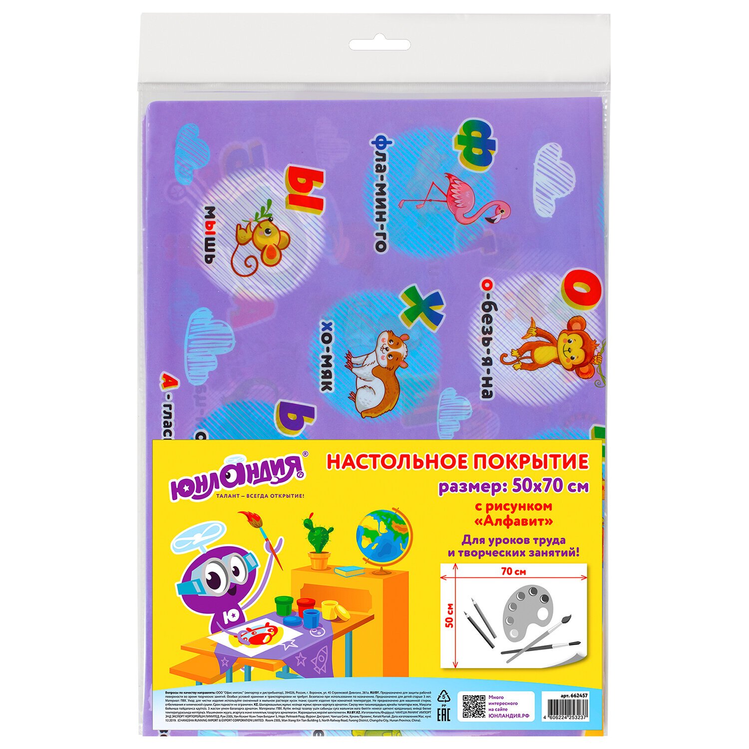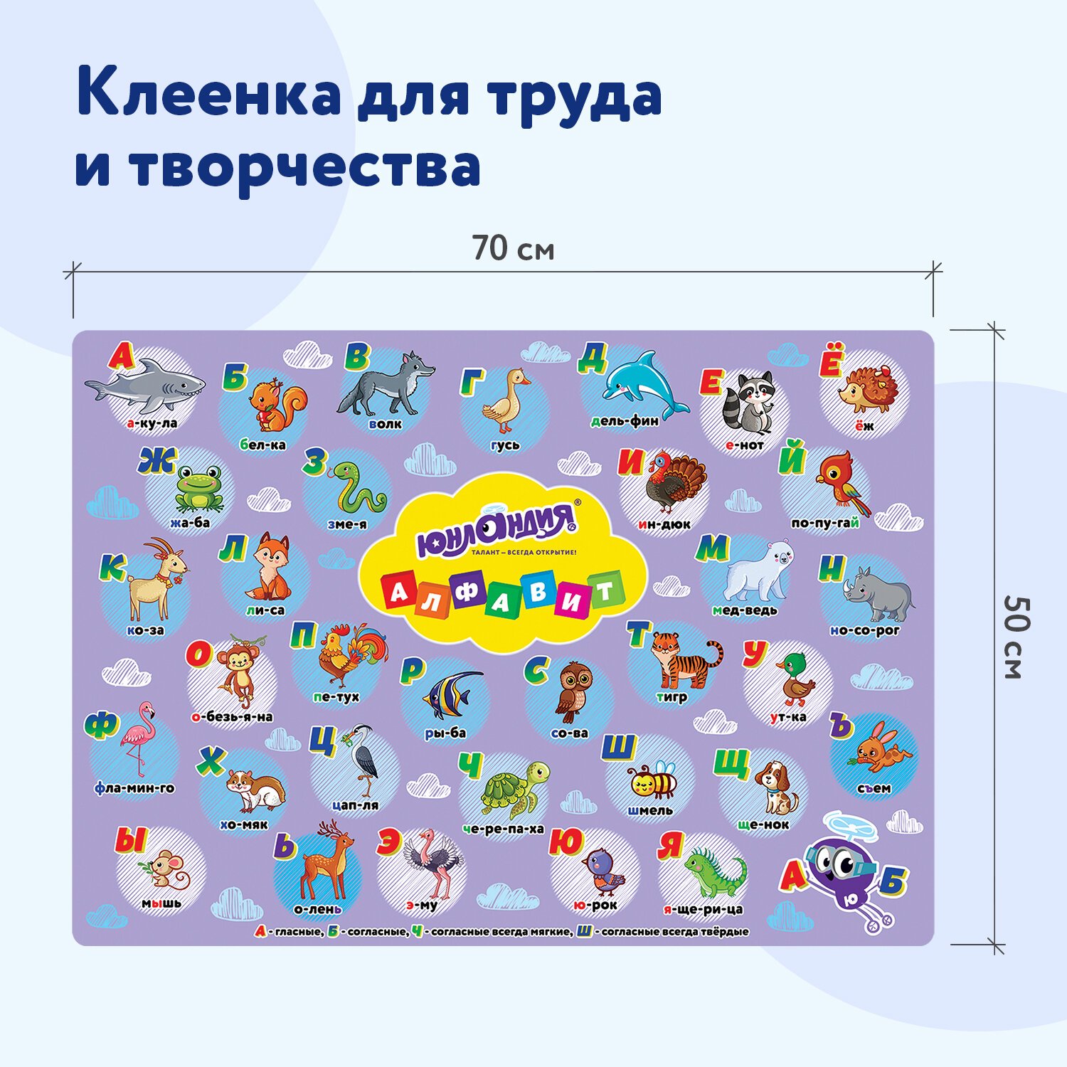Клеёнка настольная для занятий творчеством ЮНЛАНДИЯ, АЛФАВИТ, 50х70 см, ПВХ, 662457