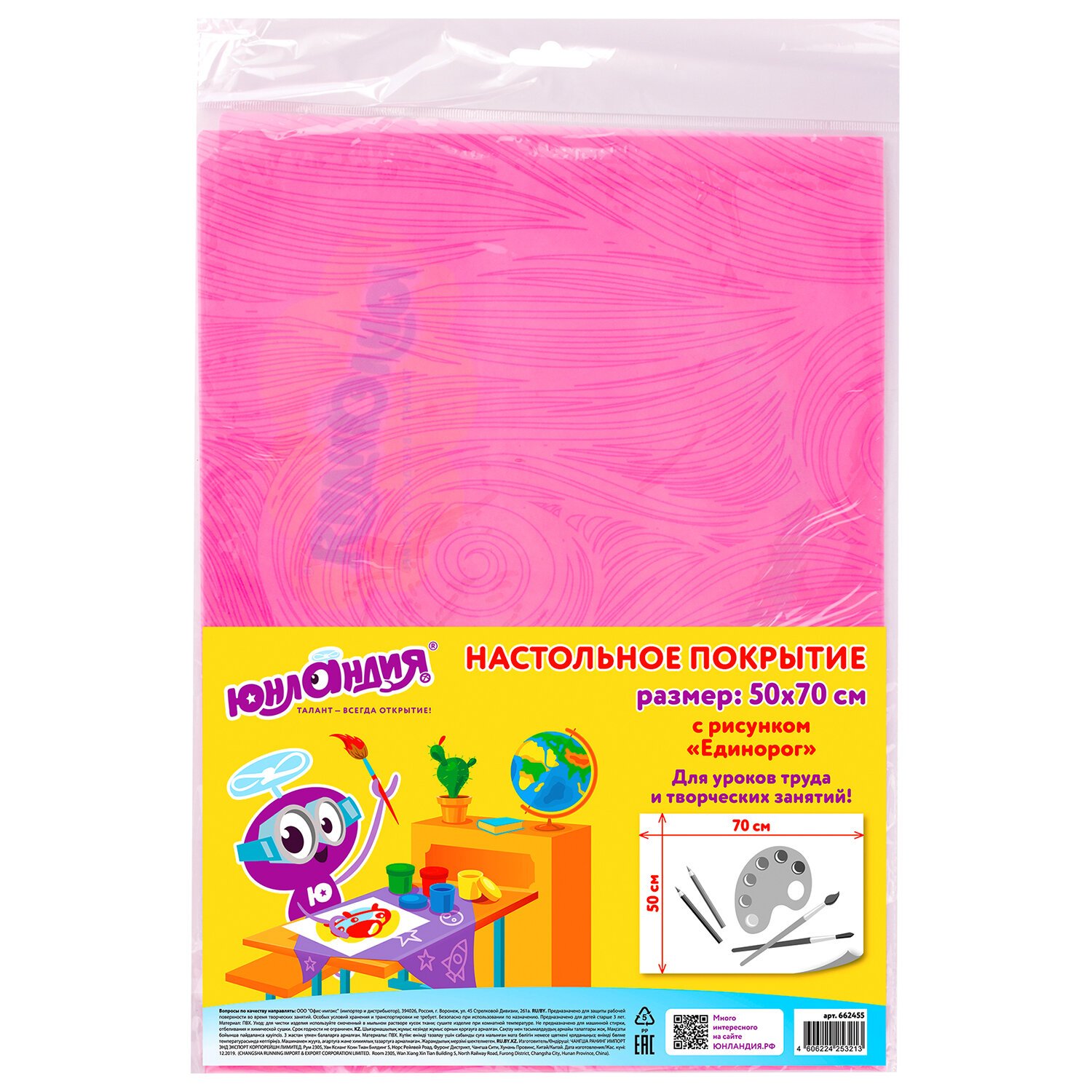Настольная клеёнка ЮНЛАНДИЯ предназначена для защиты рабочей поверхности во время творческих занятий как в школе, так и дома. Предусмотрена для многоразового использования.
