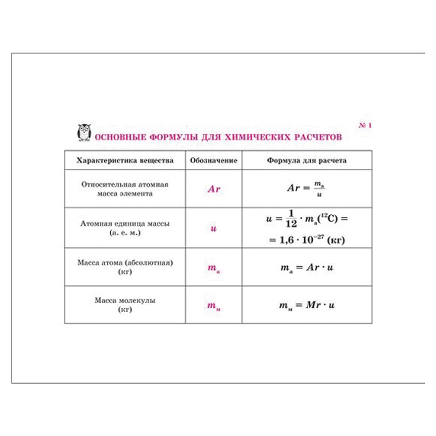 В книге содержатся основные формулы, необходимые для химических расчетов. Здесь также представлена справочная информация по неорганической и органической химии, трудная для запоминания: названия различных химических веществ и функциональных групп, основные классы некоторых органических соединений и т.п.