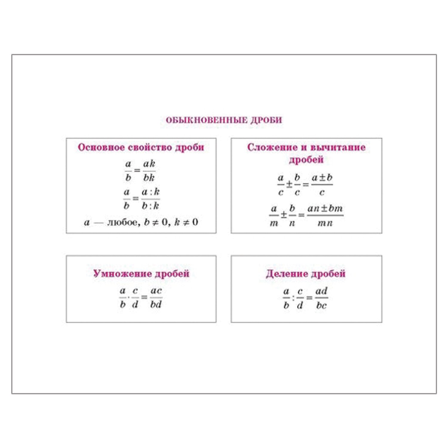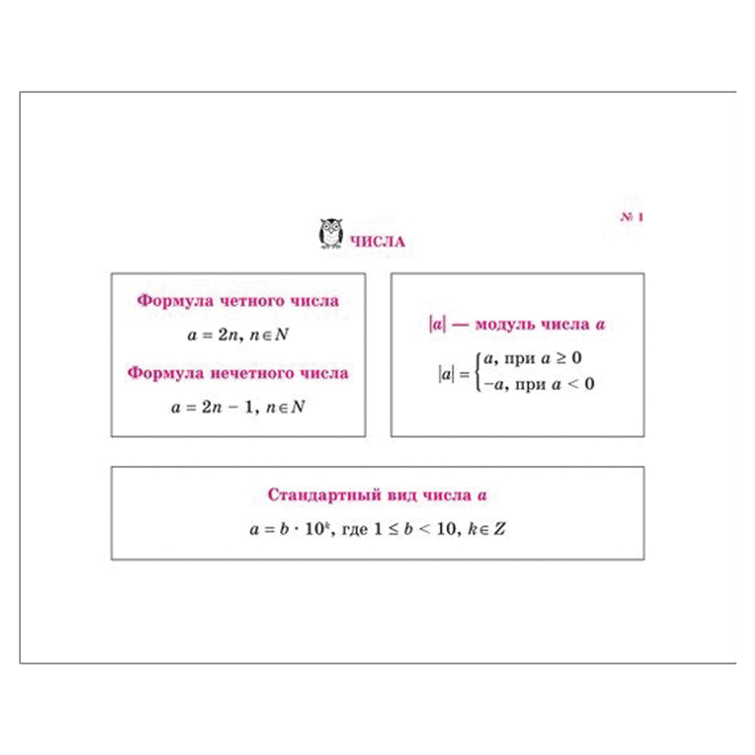В краткой и наглядной форме представлены многие темы школьной программы: обыкновенные дроби и действия с дробями, формулы сокращённого умножения, арифметическая и геометрическая прогрессия, логарифмы, функции суммы и разности углов и другие.