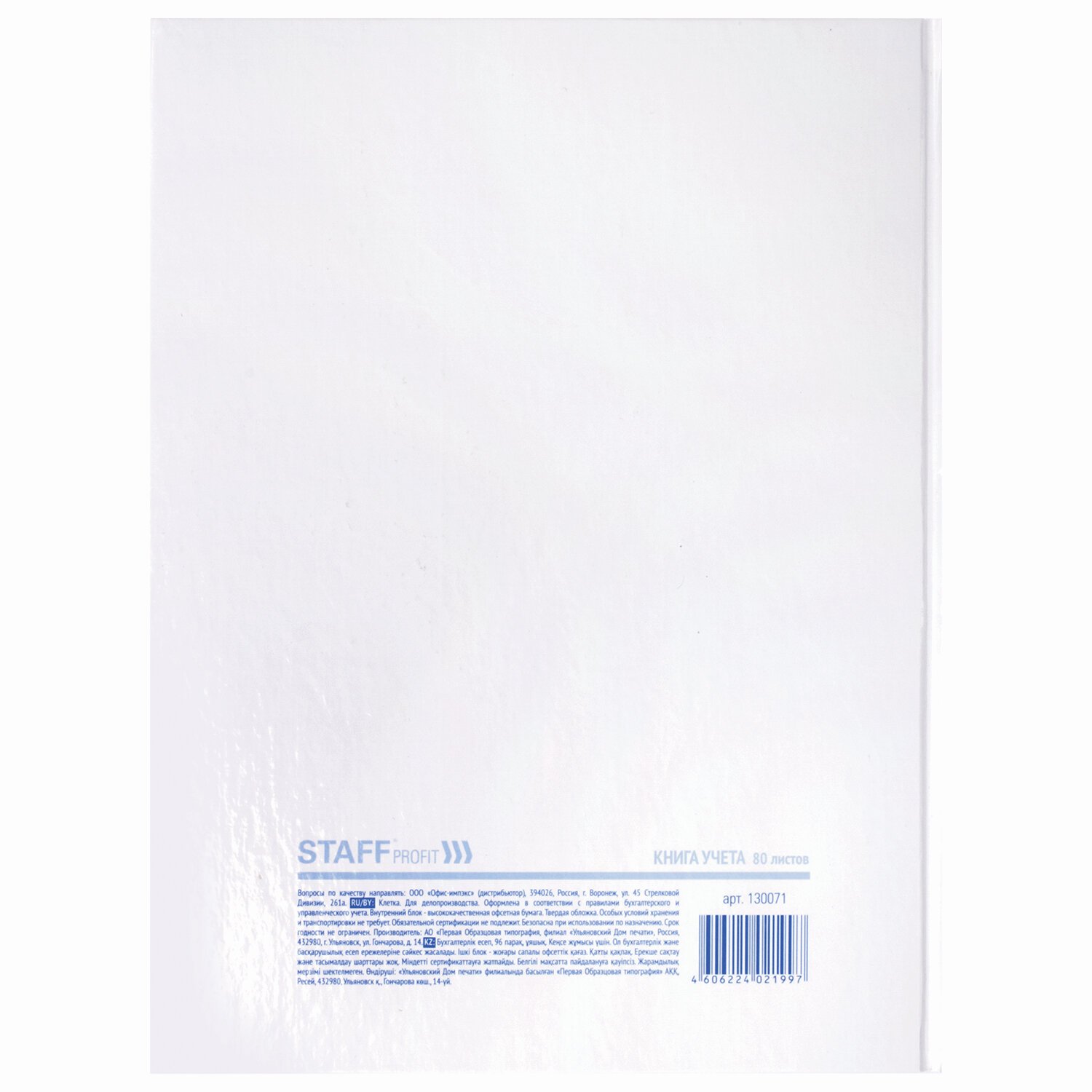 Книга учета 80 л., клетка, твердая, глянцевая, блок офсет, А4 210х265 мм, STAFF, 130071